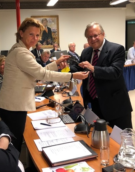 Vooraf aan de motie werd door Dhr. Herben symbolisch een sleutel aan de voorzitter van de raad aangeboden. De motie werd met 2 stemmen voor (LM) en 11 stemmen tegen verworpen.