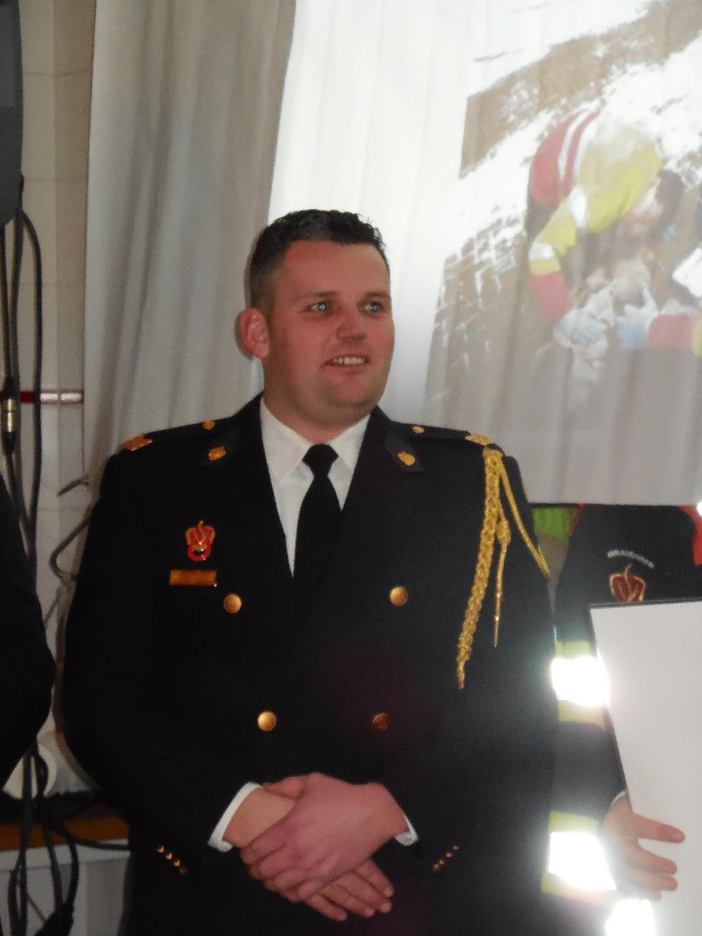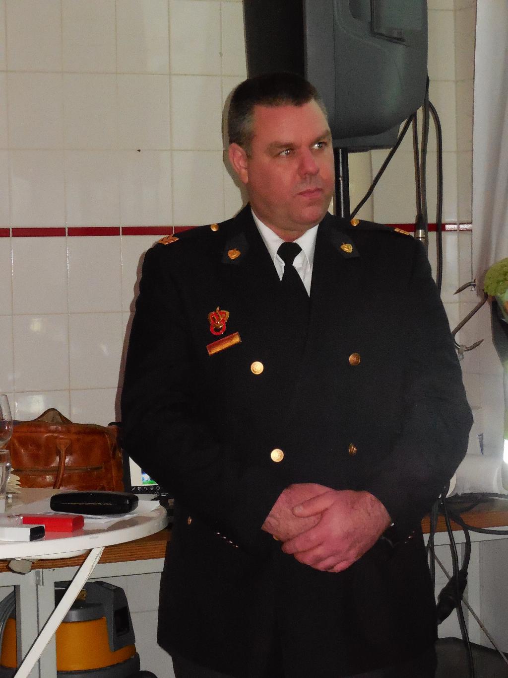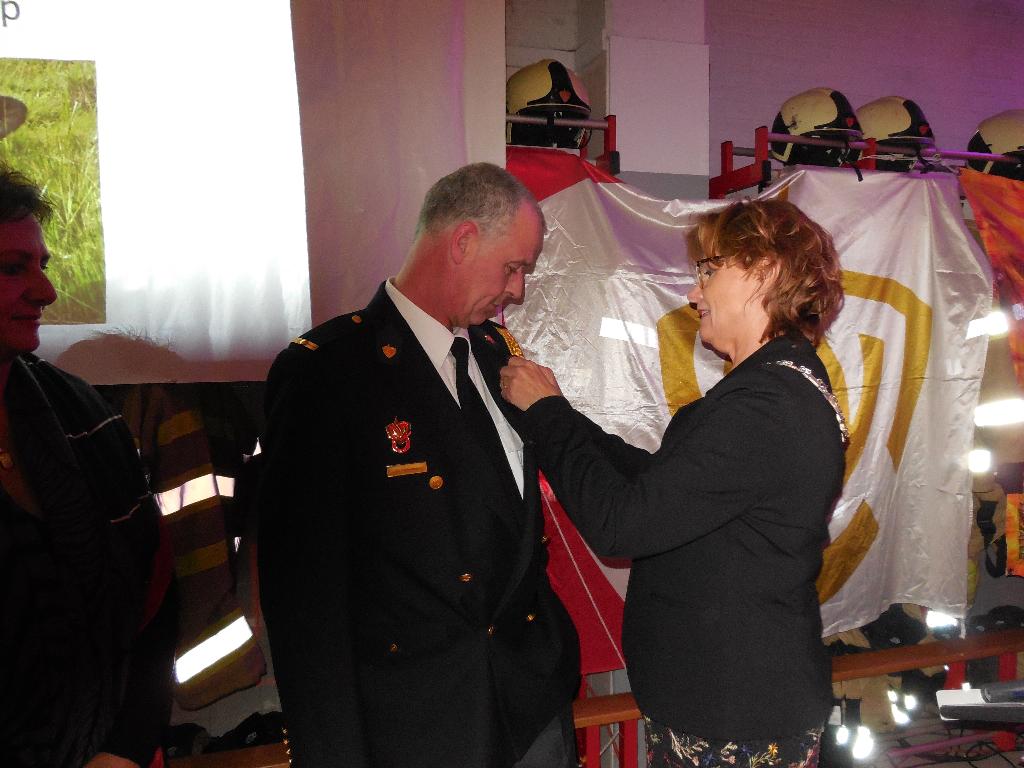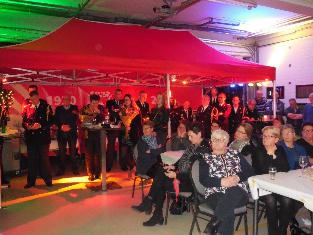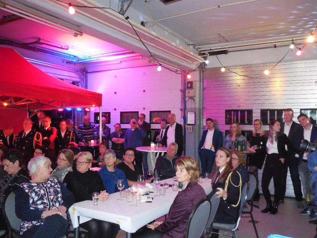 Hierna nam Renzo Kemp het woord om de postcommandant Paul Ebskamp de oorkonde voor 25 jaar trouwe dienst te overhandigen. Er werden ook nog 2 nieuwe korpsleden begroet en werd er afscheid genomen van Albert Werkhoven. Hierna kreeg burgemeester van Hartskamp het woord. Tot ieders verrassing riep zij John en Jacqueline Lissenburg naar voren en sprak vervolgens de volgende woorden: Op zaterdag 15 december heeft het Zijne Majesteit de Koning behaagt de heer John Lissenburg uit Montfoort met de Koninklijke Onderscheiding “Ridder in de orde van Oranje-Nassau” te benoemen voor al zijn werk voor de vrijwillige brandweer Montfoort gedurende 25 jaar. De kinderen Lissenburg waren uiteraard ook aanwezig bij dit moment.Na deze verrassende afsluiting van het officiële gedeelte, was iedereen in de gelegenheid alle jubilaressen en in het bijzonder John te feliciteren met hun benoemingen en ging iedereen, ondanks de snijdende koude oostenwind naar buiten voor de groepsfoto.