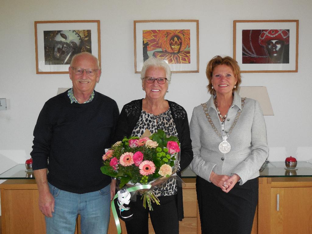 Geplaatst op:12-03-2019 Bijgewerkt op:12-03-2019 20:35 Dhr. en Mevr. Van Gent-Van den Ham 50 jaar getrouwdBron: Redactie RSM Aad van der Veen7 maart jongstleden was het 50 jaar geleden dat Hans (75) en Tonny (73) elkaar het jawoord gaven op een droge dag, in de gemeente Culemborg. Dit was haar woonplaats en Hans afkomstig uit Utrecht woonde al snel bij haar en haar moeder in. Reden voor burgemeester van Hartskamp om het bruidspaar in het zonnetje te zetten met een prachtige bos bloemen en de felicitaties namens de gemeente. Ze leerden elkaar kennen op een dansavond in “Het Oude Tolhuis” en al snel was er een klik. Ze trokken er samen op uit en Tonny mocht van haar moeder samen met Hans op vakantie naar Spanje. Haar vader was helaas overleden. Nadat ze getrouwd waren kwamen ze 50 jaar geleden wonen in Montfoort. Onder anderen op het Tabakshof, het Johannes Postplantsoen en de van Erpers Roijaardsstraat. Thans wonen zij op de Waterviolier. Ze kregen twee zoons, Fred (50) en Rob (47) en zijn nu de trotse opa en oma van 6 kleinkinderen, waarvan ondertussen de meesten ook al een relatie hebben. Ze hebben met de gehele familie het feest gevierd tijdens een lang weekend op de Weerterbergen. Hans is zijn hele leven werkzaam geweest als controller bij een holding, waar 4 diverse firma’s onder vielen. Nu hij met pensioen is genieten ze met volle teugen van het leven, waarbij vooral de caravan een belangrijke rol speelt. De fietsen gaan mee en dan wordt er vaak koers gezet richting Spanje. Daarnaast was Hans actief bij de IJsselzangers, maar vanwege de vakanties is hij daar mee gestopt. Wel loopt hij nog steeds mee met het Knooppunt, speelt graag een biljartje bij Kasteelzicht en heeft ook nog geholpen bij de oprichting van de tennisvereniging in 1971. Tonny was vroeger een fervent waterpoloster en speelde zij accordeon. Ook heeft zij nog een aantal jaren aan de kassa van ons Knopenbad gezeten. Thans is meestal thuis bezig met allerlei activiteiten. Ook de komende jaren staan nog steeds in het teken van reizen en ze hopen volgend jaar een rondreis door Europa te maken met de caravan en uiteraard de fietsen.