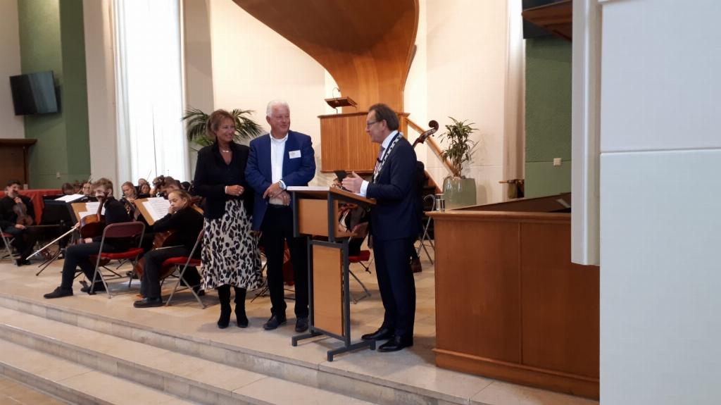 Geplaatst op:16-04-2019 Bijgewerkt op:16-04-2019 14:07 Jelte Veenhoven lid in de Orde van oranje Nassau.Bron: Nettie Kuijer, redactie Radio Stad MontfoortRuim 30 jaar geleden startte “Stichting concerten Oude kerk Zeist” met zaterdagmiddagconcerten. Na enkele jaren werden zij verdreven door de boktor en vonden onderdak in de Sionskerk. Er werden meer dan 260 concerten gegeven. Al die jaren was Jelte Veenhoven voorzitter en organist. Nu het medebestuur, de oudste is 86 en de jongste 81 jaar, vernieuwing kreeg vond Jelte het ook tijd om op te stappen.