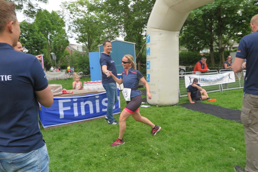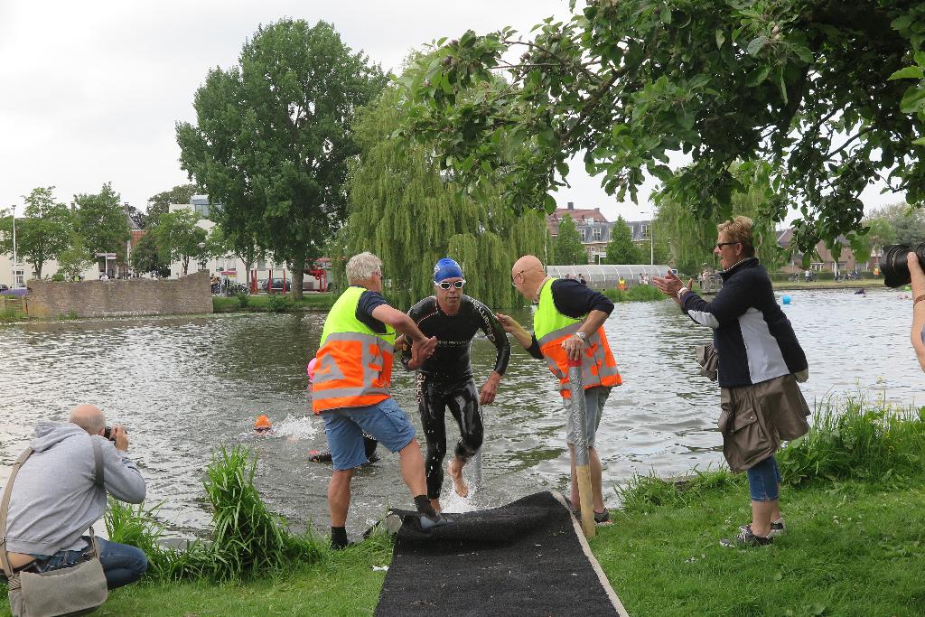 Geplaatst op:27-05-2019 Bijgewerkt op:27-05-2019 10:03 Try-out Adfys Triathlon Montfoort zeer geslaagdBron: Joke de WisselPret in het park Het was het hele weekend een drukte van belang in het Stadspark van Montfoort. Zaterdagmorgen werd voor de vijfde keer Volleybal Pret in het Park georganiseerd. Diverse teams sloegen al vroeg in de morgen de eerste ballen over het net. Dit ging door tot aan het eind van de middag. Het volleybaltoernooi werd afgesloten met een gezellige barbecue. Inmiddels waren ook de eerste springkussens opgeblazen voor het kinderspektakel Pret in het Park. De jeugd van Montfoort weet het al. Dit wordt een weekend vol pret en plezier. Twee dagen lang waren er leden van de EHBO op het terrein aanwezig. Zij hoefden gelukkig niet in actie te komen. Adfys Triathlon Montfoort In de middag ging een nieuw fenomeen van start. Voor het eerst werd de Adfys Triathlon Montfoort georganiseerd. “Dit is echt een try-out,” benadrukken de organisatoren. “We willen onderzoeken of er belangstelling is voor een achtste triathlon in Montfoort. Ook willen we onderzoeken of de organisatie goed is, het parcours veilig en we voldoende vrijwilligers kunnen krijgen om dit van de grond te krijgen om er volgend jaar een vervolg aan te kunnen geven.” Al ver voor de aanvangstijd van 14.30 uur meldden de eerste deelnemers zich. Zij wilden zich in alle rust voorbereiden en het parcours verkennen. Vijfhonderd meter zwemmen, eenentwintig kilometer fietsen en daarna vijf kilometer hardlopen is niet niks. Er waren duidelijk twee categorie deelnemers. Degenen die al vaker meedoen aan een triathlon en degenen die meededen omdat zij het een leuke en een echte uitdaging vonden. Ook de vele vrijwilligers kwamen naar het Stadspark. Zij kregen de laatste instructies en haastten zich daarna naar de locatie langs het parcours waar zij moesten zijn. Even voor half drie gingen de zwemmers het water van de Grote Gracht in. Zij waren er klaar voor. Ook hoofdsponsor Ron Haanschoten van Adfys Medisch Centrum Montfoort keek met grote belangstelling toe. Precies om half drie gaf wethouder Herman van Wiggen het startschot. Als vissen vlogen de atleten door het water. Vanaf de kant werden zij aangemoedigd door het aanwezige publiek. In en langs het water werden de zwemmers nauwlettend door de organisatie in de gaten gehouden. Ging alles goed. Kreeg niemand kramp? Op surfplanken waren vrijwilligers aanwezig die eventueel direct te hulp konden schieten. Gelukkig was dit niet nodig.  | Al snel kwam de eerste zwemmer uit het water. In looppas ging het naar de ‘wisselzone’ waar de fietsen onder bewaking stonden. In no time vertrok de eerste wielrenner voor zijn ruim twintig kilometer. Langs het hele parcours stonden vrijwilligers om aanwijzingen te geven, het verkeer te regelen en alles in goede banen te leiden. Na de ronde door Blokland, Stuiverbergseweg. Knollemanshoek, Heeswijk, Anne Franklaan en Tiendweg kwamen de deelnemers weer op de Parklaan aan. Snel naar de wisselzone en nu weer op weg om vijf kilometer hard te lopen. Ook nu waren er onderweg vrijwilligers die alles in goede banen leidden en hen van drinken voor zagen. Veel aanwonenden genoten van het mooie weer en zaten buiten. Vanuit de tuinen werden de atleten aangemoedigd. “Dit gaf echt een boost,” vertelden de deelnemers. “Het leek wel of we vleugels kregen door het enthousiaste gejuich.” Na 1.00.47 uur kwam de eerste atleet over de finish. Al snel gevolgd door de tweede, derde enzovoort. Met luid applaus werden zij door het publiek ontvangen. De laatste deelnemer finishte in 1.47.21 uur. Bij de finish stonden de organisatoren. Alle deelnemers kregen een flesje drinken en een medaille. Een leuke herinnering aan dit nieuwe en sportieve evenement. Na afloop werd er volop nagepraat. Iedereen was enthousiast. Alles was goed verlopen en de deelnemers waren allemaal veilig aangekomen. De deelnemers vertelden enthousiast over hun ervaringen. “Het was bijzonder om in de Grote Gracht te mogen zwemmen. De overgang naar het fietsen ging goed maar de overgang van fietsen naar lopen was echt zwaar. Je hebt dan al een ruime tijd gesport, je ademhaling zit hoog van het fietsen en om goed te kunnen lopen moet die omlaag.” Het lukte alle sporters om dit goed voor elkaar te krijgen en het parcours uit te lopen. “We hebben groot respect voor alle sporters die hebben meegedaan,” besluiten de organisatoren. “Het ging echt om het meedoen en niet om de winst. Het maakte niet uit of iemand sneller of langzamer was. Voor alle deelnemers nemen wij denkbeeldig onze hoed heel diep af.” Nu gaan de organisatoren alle reacties verwerken en in kaart brengen. Zij staan open voor op- en aanmerkingen, suggesties voor verbeteringen en opbouwende kritiek. Deze try-out heeft bewezen dat er belangstelling is voor een triathlon in Montfoort. Over een paar maanden beginnen de organisatoren met de eerste voorbereidingen voor de Adfys Triathlon Montfoort 2020. Het sportieve spektakel dat na de succesvolle try-out niet meer weg te denken is uit het sportieve Montfoort.