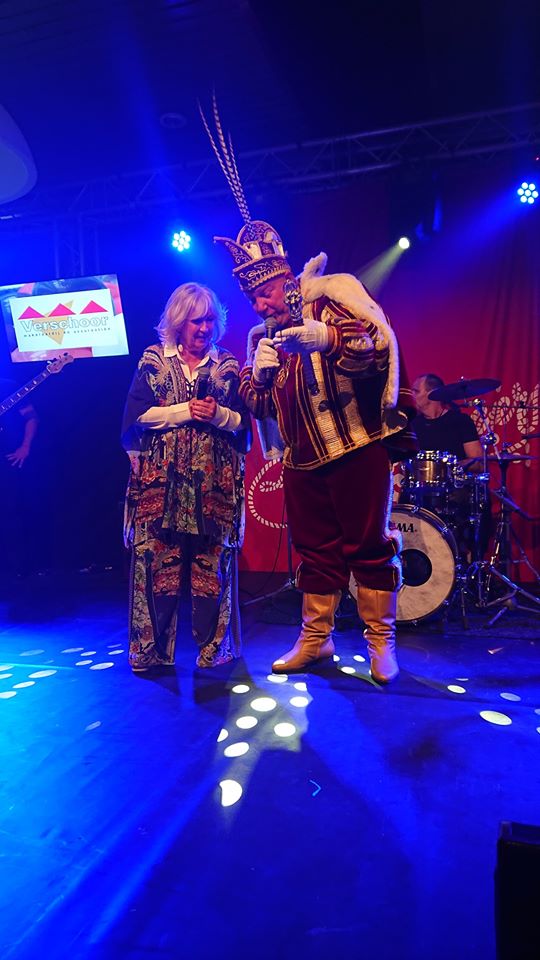 Op zaterdag een geweldige carnavalsmiddag was voor de senioren in de soos, georganiseerd door de jubilerende Les Boutonniers. Hier traden diverse artiesten op, o.a. Marco de Hollander, maar het hoogtepunt was wel het optreden van Willeke Alberti. De zaal ging helemaal los op haar muziek. Reden voor de prins om haar de versierselen van de jarige vereniging om te hangen.