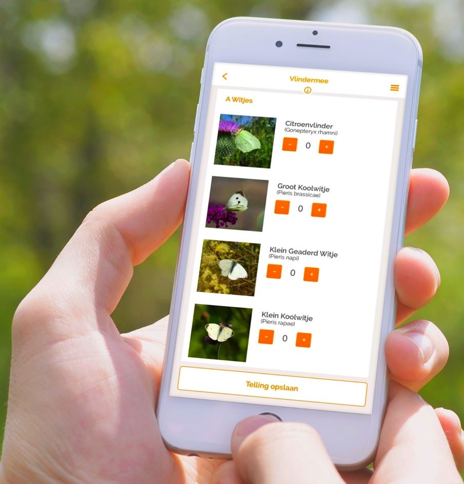 Vlinders herkennen en melden Iedereen kan zijn of haar waarnemingen van vlinders in de tuin of op het balkon direct doorgeven via de app Vlindermee of de website www.vlindermee.nl. Hulp nodig bij het herkennen van vlinders? Download dan de handige vlinderherkenningskaart. Of gebruik de app Vlindermee om vlinders te herkennen.
