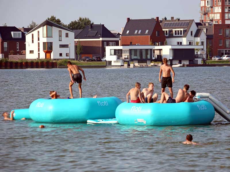 Geplaatst op:03-07-2020 Bijgewerkt op:03-07-2020 09:26 Steigers Meer van Annecy niet meer afgeslotenBron: RPL WoerdenVorig weekend waren ze nog afgesloten, maar sinds deze week zijn de steigers aan het Meer van Annecy in Woerden weer open voor bezoekers. Het kabinet heeft per 1 juli diverse maatregelen versoepeld. De anderhalve meter maatregel geldt dan in mindere mate onderling voor jongeren tot achttien jaar. Dit betekent dat de steigers niet meer afgesloten worden bij verwachte drukte of aanhoudend mooi weer. Het hekwerk is weggehaald.  Foto: Gemeente Woerden – Watertrampolines bij het strandje | Inmiddels zijn de watertrampolines bij het strandje aan de overkant volop in gebruik. Daar is meer plaats om te spelen, te zwemmen en te zonnen. De gemeente adviseert de jongeren wel op elkaar te letten, voldoende afstand te houden van volwassenen en om elkaars gezondheid te denken.