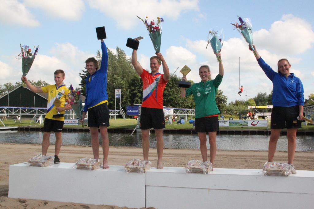 Junior Reinier Overbeek (Benschop) heeft bijgedragen aan de bouw van de schans en was verantwoordelijk voor de eerste sprongen op de schans. Dat hij er goed mee overweg kon, bleek tijdens de wedstrijd. Met 19.07 meter kwam hij een stuk verder dan Chris Anker (Vlist), die ook zeer verdienstelijk sprong (18.31 meter). Lucas van Eijk (Haastrecht) maakte het podium compleet met 17.94 meter.