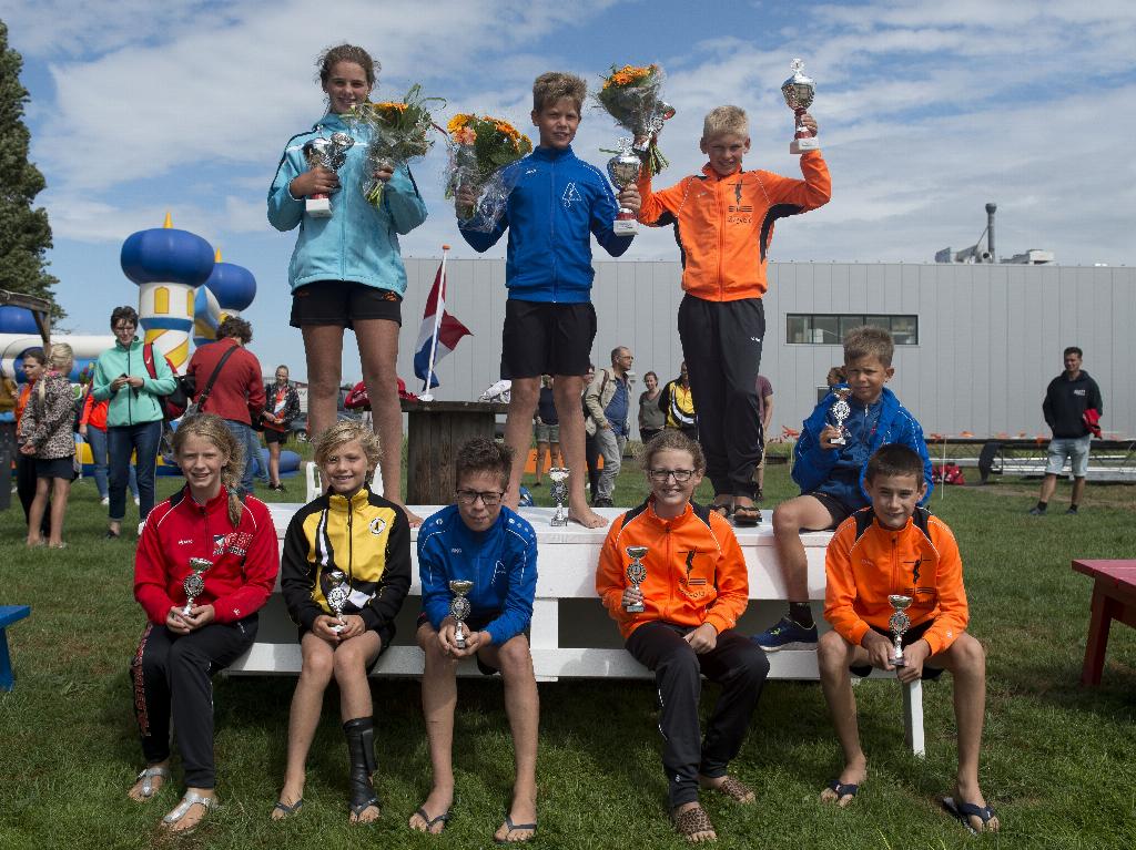 Geplaatst op:23-08-2020 Bijgewerkt op:23-08-2020 11:11 Hollands kampioenschap Jeugd ZegveldBron: PB HollandOp 22 augustus 2020 vond het Hollands Kampioenschap plaats. Er werd in drie categorieën gesprongen om de eervolle titel ‘Hollands Kampioen’. Tijdens de wedstrijd waren er bijzonder moeilijke omstandigheden met de wind vanaf rechts. Dit betekende enerzijds dat er geen topsprongen over de 10 meter werden verwacht, maar anderzijds dat er meer springers kans maakten op de titel. Na een onderbreking van de regen kwam de wedstrijd los. De spanning steeg met iedere sprong en iedere springer was er op gebrand zich in de top-3 te springen. Er werden aan het eind van de wedstrijd 3 ware kampioenen gekroond, die in de voorrondes de verste afstanden hadden gesprongen. Helaas moest de finale vanwege de weersomstandigheden worden afgelast. In de leeftijdscategorie t/m 10 jaar was het Mark Boer (Woerdense Verlaat) die zijn favorietenrol waarmaakte en in de laatste sprong met 9,23M zijn eerste plek veiligstelde. In de leeftijdscategorie meisjes 11/12 jaar werd Lisanne Cazant (Kockengen) kampioen. De springster die al enige tijd op de grote schans haar wedstrijden springt liet al in haar 1e sprong van 9,43M zien dat zij de te kloppen vrouw was. Dit bleek uiteindelijk de winnende afstand en met trots nam ze dan ook de bokaal met bloemen in ontvangst. In de leeftijdscategorie jongen 11/12 jaar waren er vooraf vele kanshebbers. Toppers van de jeugdschans en toppers van de grote schans namen het tegen elkaar op. Uiteindelijk was het Nikalaj Lodder (Oudewater) die als terechte winnaar uit de bus kwam. Zijn 2e sprong met een afstand van 9,39M bleek onbereikbaar voor de concurrentie.