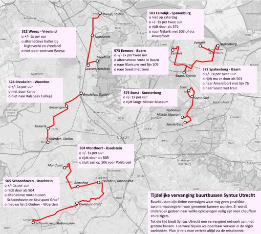 Geplaatst op:26-08-2020 Bijgewerkt op:26-08-2020 09:04 Syntus Utrecht breidt dienstregeling per 30 augustus uitBron: Communicatie Keolis NederlandVanaf 30 augustus breidt Syntus Utrecht de dienstregeling uit. Een groot aantal buslijnen rijdt dan weer volgens de gebruikelijke dienstregeling. Daarnaast zijn er een aantal lijnen die volgens de kerstvakantiedienstregeling rijden en zijn er lijnen met extra toegevoegde ritten. Omdat het in verband met Corona moeilijk te voorspellen is hoe reizigers de komende periode gebruik maken van het OV, houden wij extra bussen stand-by, die wij kunnen inzetten wanneer het te druk wordt. De dienstregeling geldt tot en met 12 december 2020. Meer informatie over de dienstregeling en een overzicht van alle buslijnen vind je op deze pagina. Op diverse stads- en streeklijnen wordt de dienstregeling aangepast en/of uitgebreid. Zo zetten wij op enkele lijnen extra ritten in buiten de spits en worden er langere bussen ingezet: • Lijn 10 Amersfoort CS - Hoornbeeck/Van Lodenstein: overdag meer en langere bussen • Lijn 70 Soestdijk Noord - Amersfoort: hele dag 4x per uur • Lijn 76 Bunschoten-Spakenburg - Amersfoort: hele dag 4x per uur • Lijn 102 Utrecht - Woerden: extra ritten • Lijn 107 Utrecht - Montfoort - Gouda: extra rit in de ochtend en hele dag 4x per uur tussen Utrecht – Montfoort • Lijn 123 Uithoorn - Woerden: extra rit in de ochtend en hele dag 2x per uur • Lijn 201 Amersfoort - USP: extra ritten overdag • Lijn 295 Utrecht - Schoonhoven: hele dag 4x per uur Meer spreiding scholierenlijnen i.v.m. nieuwe schooljaar De dienstregeling van de scholierenlijnen wordt vanaf 30 augustus meer gespreid. Dat is onder andere besloten na gesprekken die zijn gevoerd met diverse scholen. De lesroosters van de scholen en de dienstregeling zijn zo veel mogelijk op elkaar afgestemd ten behoeve van een betere spreiding van het aantal scholieren in onze bussen. Scholierenlijnen 603 en 683 rijden vanaf 31 augustus weer volgens de gebruikelijke dienstregeling. De scholierenlijnen 603 en 695 gaat na de herfstvakantie weer zoals gebruikelijk rijden. De scholierenlijnen 680 en 682 rijden vanaf 31 augustus volgens een aangepaste dienstregeling: • Lijn 680 Rhenen - Amersfoort: gespreid vertrek en extra rit vanaf station Veenendaal-De Klomp. • Lijn 682 Houten - Amersfoort: rijdt door van/naar Hoevelaken. Naast de scholierenlijnen rijden ook enkele buslijnen (met een route langs scholen) en diverse buurtbuslijnen meer gespreid of extra. Alle ritten die rijden zijn verwerkt in de reisplanner. Staat een rit niet in de reisplanner? Dan rijdt deze niet. Plan je reis voor vertrek daarom altijd via onze reisplanner of 9292.nl voor de juiste vertrektijden en een actueel reisadvies.
