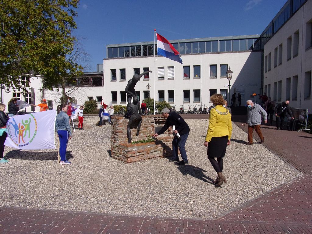 Vrijdag 23 april was op het Kasteelplein in Montfoort de officiële aftrap voor de Vrijheidsspeurtocht. Twee leerlingen van iedere basisschool uit Montfoort vertegenwoordigden met schoolvlag hun school. Zij werden o.a. door Hans Elzas, secretaris van het  4 en 5 mei comité en door de burgemeester toegesproken.