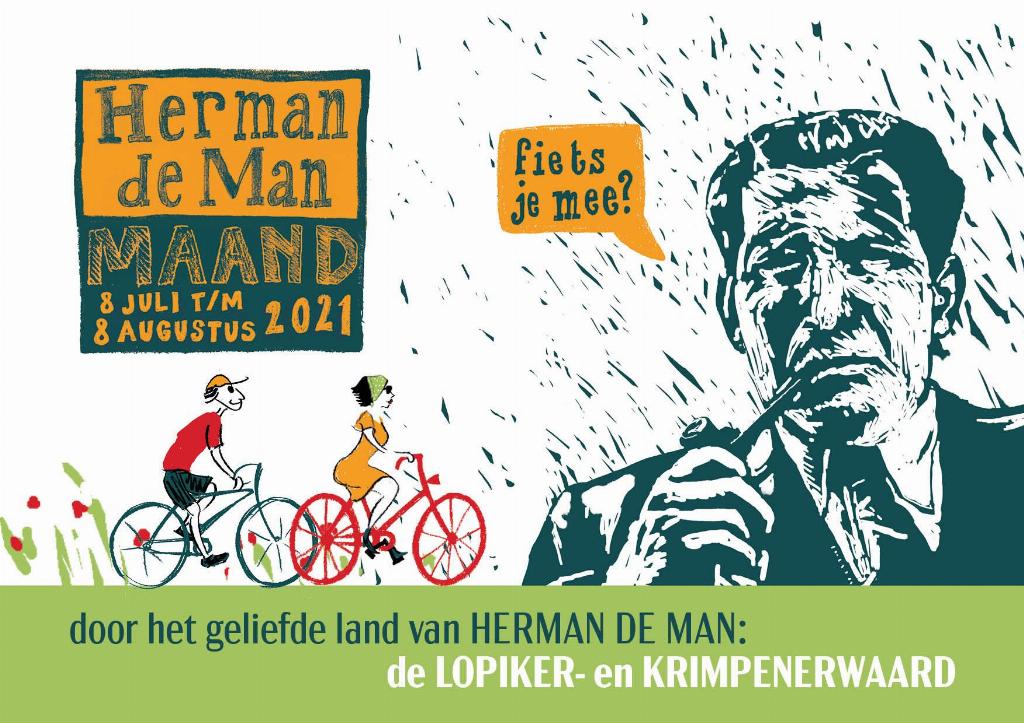 Geplaatst op:22-06-2021 Bijgewerkt op:22-06-2021 07:15 Met de fiets en de pen Er op uit in de maand van Herman de ManBron: Gerda HoogendijkNog slechts enkele weken te gaan en dan trapt de Herman de Manmaand af. Van 8 juli t/m 8 augustus vinden in de vierhoek IJsselstein – Schoonhoven – Gouda – Woerden zo’n 100 activiteiten plaats, meestal in de weekenden, maar een aantal ook doordeweeks. De gelijknamige website is online. Wil je zeker zijn van een plaats bij een van de vertelvoorstellingen Het wassende water en Stoombootje in de mist, reserveer dan een plaats. De eerste activiteit is het Groot dictee van Herman de Man op 28 juni in Schoonhoven, Gouda, IJsselstein en via Zoom. Aanmelden hiervoor kan nog steeds. Ook diverse stadswandelingen en vaartochten in de Lopiker- en Krimpenerwaard, al of niet in combinatie met een lezing, koffie- of lunch kunnen geboekt worden. Zo ook de wandelingen naar de eendenkooi Het beloken land in Montfoort en de online schrijfworkshops. Plan je eigen Herman de Mandag Langs vijf verschillende fietsroutes kan men onderweg afstappen voor leuke en informatieve activiteiten die in meer of mindere mate in het teken staan van Herman de Man. Omdat De Man er gewoond heeft, die boerderij / dat café / die rivier of wetering / dat land een rol in een van zijn boek(en) gespeeld heeft of omdat daar opnames voor de tv-serie Het wassende water hebben plaatsgevonden. Er is voor elk wat wils: variërend van lezingen, rondleidingen, stadswandelingen tot vaartochten, boerderij- en tuinbezoeken, workshops boekselen, oldtimer trekkertoertocht en een koetsenrit. Een groot aantal activiteiten is gratis, voor enkele is een vrijwillige bijdrage in de hoge hoed of melkbus welkom en andere dienen bij reservering betaald te worden. Veel wetenswaardigheden over De Man zelf staan online en de fietsroutes zijn te downloaden.