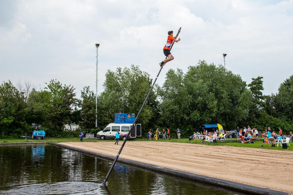 Geplaatst op:28-06-2021 Bijgewerkt op:28-06-2021 07:46 Polsstokseizoen start met klinkende overwinning voor Jaco de GrootBron: PB HollandDe polsstokverspringers zijn het seizoen voortvarend gestart. Meteen op de eerste dag van de versoepelingen van de corona-maatregelen werd er in Kockengen gesprongen in alle wedstrijdklassen. De Nederlands Recordhouder Jaco de Groot uit Kamerik kwam meteen sterk uit de startblokken en won de wedstrijd met een afstand van 20.82 meter, na in de voorronde ook al een mooie 20 meter te hebben gesprongen. Ook Erwin Timmerarends, tegenwoordig woonachtig in Bodegraven en Wilco van Amerongen uit Benschop sprongen sterk met, in de finale, ruime 20 meter afstanden. Lucas van Eijk (Haastrecht), dit jaar voor het eerst meespringend bij de Senioren, had een sterke openingsprong met 19.93 meter. Hij leidde enige tijd de wedstrijd en werd uiteindelijk knap vierde. De Dames hebben duidelijk wat meer tijd nodig om wedstrijdritme te vinden. Fabienne Overbeek (Benschop) was overtuigend de beste van de avond met een afstand van 14.52 meter. Op ruime afstand gevolgd door Demi Groothedde uit Jaarsveld (13,40 meter) en Laura Maaijen uit Haastrecht (13,33 meter)