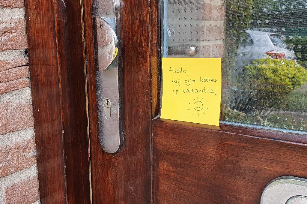 Geplaatst op:29-06-2021 Bijgewerkt op:29-06-2021 07:51 Inbrekers gaan dit jaar niet op vakantie, maar slaan toeBron: Stichting Nationale Inbraakpreventie Weken (NIPW) Coen Staal, voorzitterMiljoenen achter- en voordeuren zijn een té makkelijke prooi Terwijl heel Nederland, na een ruim jaar thuiswerken, snakt om erop uit te trekken en massaal vakanties boekt op campings, parken en resorts, ruiken inbrekers hun kans. En hoewel 2 op de 3 voor- en achterdeuren tegenwoordig goed beveiligd zijn, kunnen criminelen nog eenvoudig toeslaan bij zo’n 4 miljoen van die deuren. De overheid zegt in zijn campagnes met het zwaailichtje niet voor niets: “maak het ze niet te makkelijk”. Door slechte beveiligingsmaatregelen, krijgen dieven weer de kansen waar ze zo lang op hebben moeten wachten in de paar weken dat een woning niet wordt bewoond. Coen Staal, voorzitter van de stichting Nationale Inbraakpreventie zegt dan ook: “Doe er iets aan, dat is echt makkelijker dan je denkt”.  | Briefje op de deur: “Wij zijn op vakantie” Zo’n briefje plaatst natuurlijk niemand op zijn of haar voordeur. Maar je huis duidelijk onbewoond achterlaten, is voor een oplettende inbreker ongeveer hetzelfde als dat briefje. Een ervaren inbreker ziet in een oogopslag of een achterdeurslot of een keukenraam een ‘makkie’ is of dat het een zware klus gaat worden. Natuurlijk kiest hij dan voor de makkelijkste prooien. In de zomer heeft hij tenslotte keus te over: er zijn overduidelijk veel mensen voor langere tijd van huis en 1 op de 3 deuren is erg slecht beveiligd. Onderzoek*) wijst uit dat maar liefst 30 tot 40 procent van de achterdeuren én van de voordeuren een zodanig slecht slot of beslag heeft dat een inbreker met schroevendraaier en tang binnen 1 minuut binnen is. En dán heeft hij volop tijd om op zoek te gaan naar jouw waardevolle spullen. Lees de onderstaande 6 tips hoe dat eenvoudig is te voorkomen. 6 tips om je huis veilig achter te laten te gaan Zeker de bewoners van woningen met één van die 4 miljoen deuren die niet veilig genoeg zijn, zouden de eerste tip hieronder ter harte moeten nemen. Maar in alle gevallen, maak het de crimineel tijdens jouw vakantie in ieder geval zo moeilijk mogelijk. Om straks met een gerust gevoel naar je vakantiebestemming af te reizen, heeft de stichting Nationale Inbraakpreventie dan ook 6 eenvoudige tips: Ga naar inbraakmislukt.nl en check je voordeur, achterdeur en je ramen via “Hoe beveilig ik beter?” Als daaruit blijkt dat je het beste je oude beslag kunt vervangen door beslag met cilindertrekbeveiliging (eigenlijk een minimum-eis), plààts dan dat nieuwe beslag op de achterdeur voor je vertrekt. Dat kost je misschien 70 euro. Of plaats goedgekeurde raamboompjes op je keukenraam voor ongeveer 50 euro. Daarmee verklein je de kans op inbraak enorm! Laat ’s avonds niet één lampje aan gaan, maar alle lampen die je normaliter ’s avonds aan hebt. Zet er een tijdschakelaar op en stel ze in op verschillende tijdstippen. Laat de lamp in de slaapkamer nog een kwartiertje aan nadat alle lampen in de woonkamer zijn uitgegaan. Er zijn tegenwoordig ook handige lampen die je met een app kunt bedienen, ook bij (plafond)lampen waar een tijdschakelaar niet geplaatst kan worden.