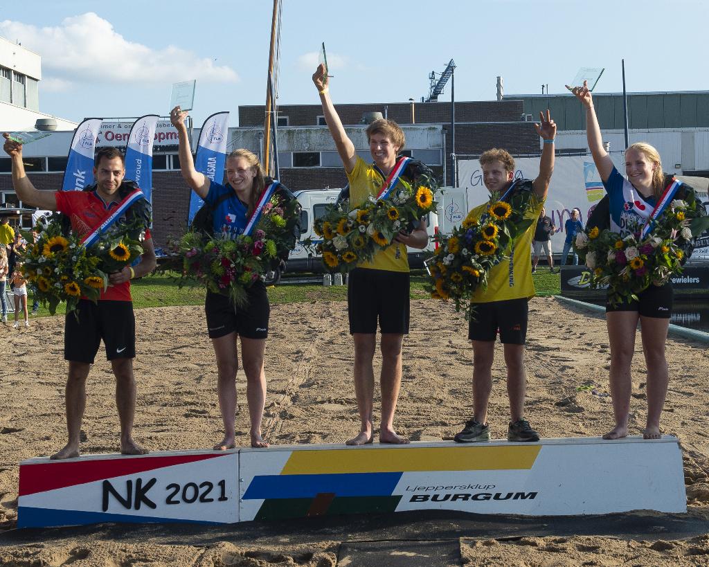 Geplaatst op:19-09-2021 Bijgewerkt op:19-09-2021 09:03 Hollandse springers imponeren op sensationeel NK PolsstokverspringenBron: Polsstokbond HollandDe Hollandse polsstokverspringers hebben huis gehouden op het Nederlands Kampioenschap Polsstokverspringen. Hier werd afgelopen zaterdag onder perfecte condities om gesprongen. Het massaal toegestroomde publiek genoot van een prachtige middag met vele successen voor de Hollandse Ploeg. De verrassing van de middag werd Wouter van Midden (Vlist). Hij sprong al geregeld verre afstanden dit jaar en ook op het NK liet hij zien in vorm te zijn. Vanuit de eerste seniorengroep wist hij de polsstok stil te springen en helemaal naar de top te klimmen. Het resultaat was een verbluffende 21.42 meter. In de tweede seniorengroep kwamen toppers als Jaco de Groot (Kamerik) en Erwin Timmerarends (Bodegraven) dichtbij met van respectievelijk 21.03 meter en 20.90 meter. Regerend Nederlands Kampioen Rian Baas (Gouda) miste de finale op 7 centimeter. In de finale deden de springers verwoeste pogingen om de afstand van Van Midden te verslaan, maar dat lukte niet. Zo ging Wouter van Midden naar huis met zijn eerste grote titel en mag hij zichzelf Nederlands Kampioen noemen.  | Ook in de junioren categorie was er succes voor het Hollandse team. Reinier Overbeek (Benschop) ging als topfavoriet naar het NK, maar het was Rutger Haanstra (It Heindenskip) die in zijn eerste sprong geweldig uithaalde. Hij maakte een perfecte sprong en landde uiteindelijk op 20.53 meter, een nieuw Fries Juniorenrecord. Ook Wisse Broekstra (Tzummarum) sprong een knappe wedstrijd met 19.92 meter. Maar Reinier Overbeek doet wat hij al vaker deed. In zijn laatste sprong stond hij perfect stil, kwam hij snel bovenin de stok en met een zwevende uitsprong kwam hij terecht op 21.22 meter. Hiermee wist hij de wedstrijd toch weer naar zijn hand te zetten.  | Roy Velis (Benschop) was de torenhoge favoriet in de jongensgroep. Hij won dit jaar al vele wedstrijden en werd twee jaar eerder al Nederlands Kampioen. Ook in Burgum liet hij zijn klasse weer zien. Met een sprong van 19.33 meter zette hij een afstand neer waar de concurrentie alleen maar van kan dromen. De verrassende Karsten Klarenbeek (Vlist) kwam nog het dichtste in de buurt. Met een nieuw persoonlijk record van 18.38 meter pakte hij het zilver. Het brons ging naar Rick Cazant (Kockengen) en ook hij sprong een nieuw persoonlijk record: 17.95 meter. In de damescategorie was er minder succes voor de Hollandse springsters. Demi Groothedde (Jaarsveld) was net aan op tijd hersteld van haar blessure. Zij sprong direct een goede wedstrijd, maar met een afstand van 15.48 meter was dat net tekort voor het podium. Ook Laura Maaijen (Haastrecht) bleef daar met 15.27 nipt achter. Uiteindelijk werd het een compleet Fries podium met Marrit van der Wal (It Heidenskip) als winnares. Zij kwam tot 16.31 meter en was daarmee nipt voor de winnares van vorig jaar: Sigrid Bokma (Hindeloopen). De Burgumse Pytrix Westra completeerde het podium. Zij maakte een perfecte sprong en landde op een nieuw persoonlijk record: 15.64 meter. Spannend was het ook in de meisjes categorie. Suzanne Mulder (Vlist) wist al 11 achtereenvolgende wedstrijden te winnen, maar op het Nederlandse Kampioenschap was er ook tegenstand van de Friese meisjes. Suzanne sprong de wedstrijd open met een afstand van 15.40 meter. De Friese aanvoerdster Hanneke Westert wist hier in de finale echter ruim aan voorbij te gaan. Met een sprong van 16.23 meter zette zij de wedstrijd naar haar hand in een nieuw kampioenschapsrecord. Hier kwam Suzanne niet meer aan en dus moest zij genoegen nemen met het zilver. Het seizoen zit er nu op voor de polsstokverspringers. Na een lange winterstop zal het volgende seizoen naar verwachting in mei 2022 weer van start gaan.