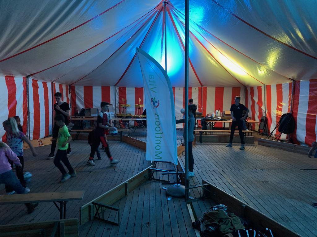 Maandagavond kon de jeugd zich uitleven met Panna voetbal in de tent.