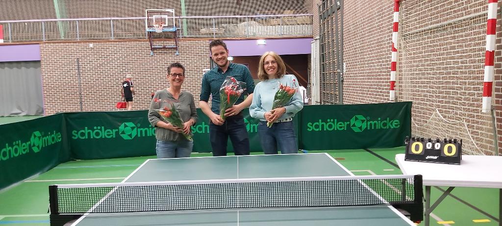 Geplaatst op:26-04-2022 Bijgewerkt op:26-04-2022 11:39 Duoteam 4 van tafeltennisvereniging TTV de Schans is kampioen geworden en gaat voor het eerst 5e klas spelen.Bron: Brigit Kers TTV de SchansIn een poule van 5 teams waren ze op papier de sterkste, maar je moet het toch maar even doen. Zonder invallers kwamen ze op 4x winst met 5-0 en 4x winst met 4-1, dus met maar 4 verlies punten. Henny, Erik-Jan en Marja nogmaals gefeliciteerd. Helaas volgend seizoen de 5e klas in zonder Erik-Jan maar met Dirk en Joop.”