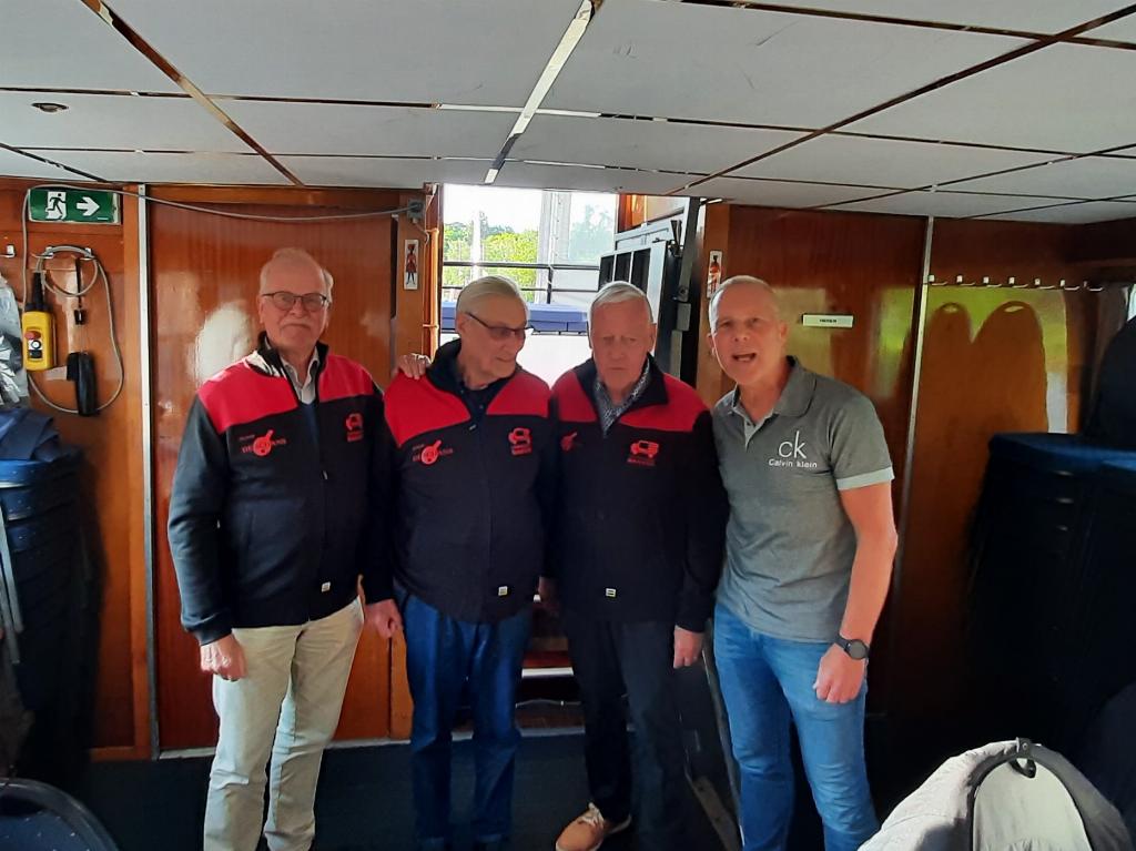 Tijdens deze prachtige vaartocht was het Carlos Bakker, directeur van carrosseriebedrijf Bakker te Montfoort, die de leden van de vereniging verraste door het aanbieden van een passend trainingsjack in de clubkleuren rood/zwart. Een geschenk dat dankbaar is aanvaard.