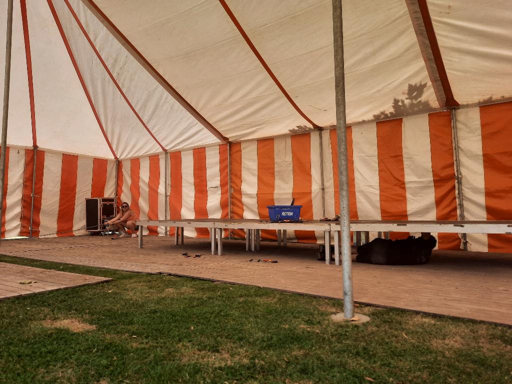 We zijn weer begonnen met opbouwen bij de VOM. Elk jaar beginnen we op donderdag voor de VOM-week met het opbouwen van de STAM-tent. Op vrijdag en zaterdag zorgen we dat de laatste puntjes op de i geregeld worden.