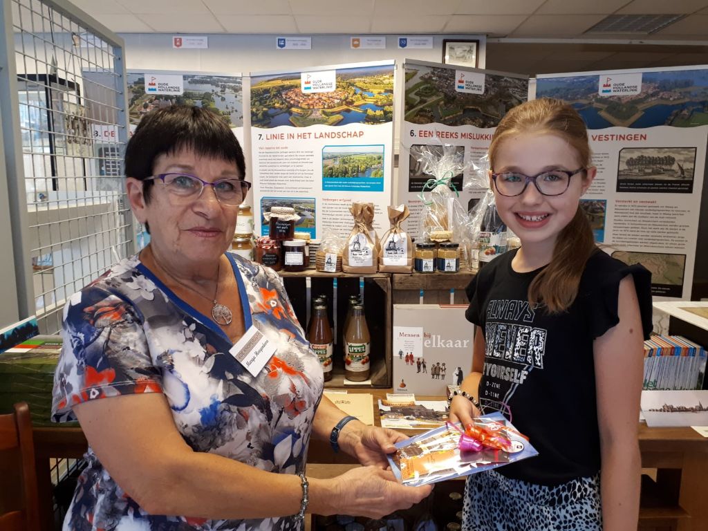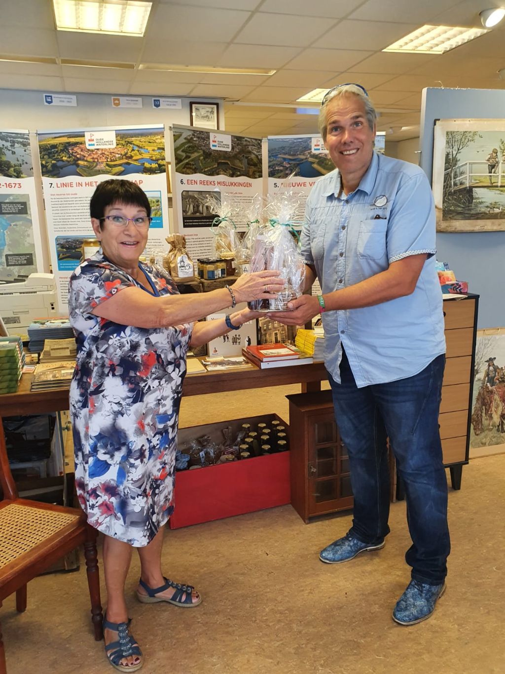 Geplaatst op:01-09-2022 Bijgewerkt op:01-09-2022 13:57 Prijsuitreiking KnopenradenBron: Hetty Elzas, KnoperijTijdens de drukbezochte Jaarmarkt in Montfoort kon bij de kraam van Stadsmuseum De Knoperij geraden worden hoeveel knopen er in de pot zaten. Grote, kleine, nieuwe en oude knopen door elkaar, waardoor het behoorlijk moeilijk was om een schatting te maken. Tientallen mensen en kinderen waagden een poging, waarbij de genoteerde aantallen uiteenliepen van 100 tot 1200 stuks. Er waren twee prijzen te verdienen; één voor kinderen en één voor volwassenen. Uiteindelijk bleken de 12-jarige Charlotte Golüke (380 knopen) en de heer M. van Kuilenburg ((392 knopen), beiden uit Montfoort, er verreweg het dichtst bij te zitten. Het totaal aantal knopen in de pot was 388. Beide winnaars hebben inmiddels hun prijs in ontvangst genomen: een mooi ingepakte bon van de plaatselijke drogist om zelf iets leuks uit te zoeken voor Charlotte en een Knoperij-pakket met streekproducten voor de heer van Kuilenburg.