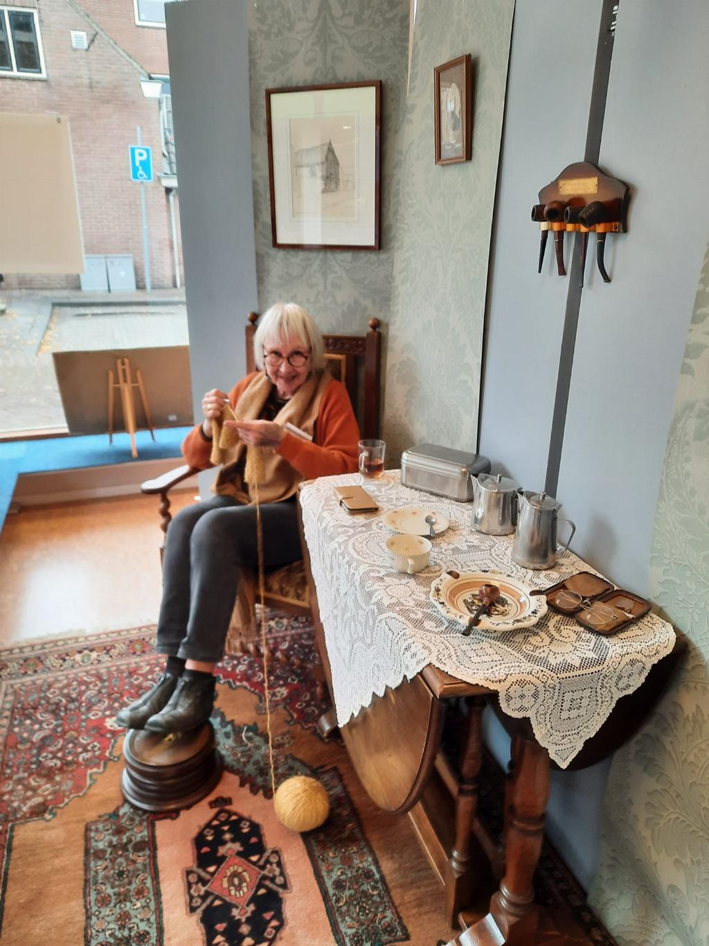 Dit en nog veel meer is te zien in de nieuwste expositie in De Knoperij. Daarvoor is in de archieven van het Antonius gedoken. Het onderzoeksteam is ook op bezoek geweest bij het kruisherenklooster in St Agathe in Limburg. Hier liggen de archieven van (o.a.) de Zusters van de Choorstraat waar het Antonius Gesticht, zoals het toen nog heette, onder viel. Er kwamen veel foto’s boven water, bijzondere personen en verhalen. Uit de oudheidkamer zijn voorwerpen gehaald uit die tijd, die de etalages nu vullen. In de Knoperij is het interieur van een kamertje uit het pension nagebouwd. Ook aan de zorg voor de wezen wordt aandacht besteed. Er gebeurde veel goeds. Wezen werden vaak goed opgevangen en moesten een vak leren. Heel bijzonder: de textielwerkgroep kleedde twee poppen aan in de 17e eeuwse kleding van de Montfoortse weeskinderen.