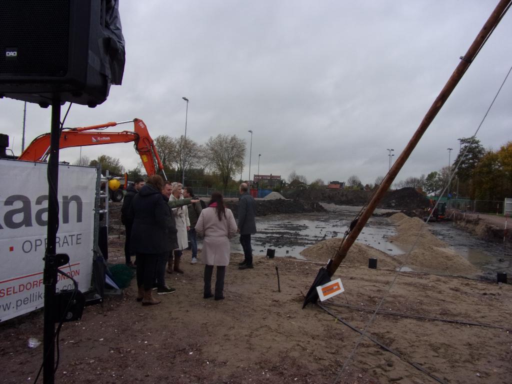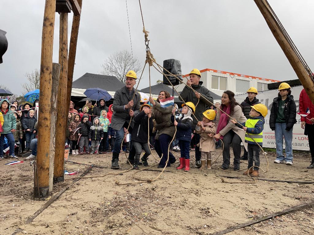 Geplaatst op:17-11-2022 Bijgewerkt op:22-11-2022 11:26 Koude start Kindcentrum Montfoort.Bron: Nettie Kuijer, redactie Radio Stad MontfoortDonderdag 17 november: een koude herfstochtend met regen en wind. Maar daar trokken de 600 kinderen die achter ZWUB aanliepen zich niet veel van aan. Twee aan twee, de grootste schoolkinderen met een kleuter aan de hand, liepen ze vanaf hun school, via Heulestein en de Parklaan naar het modderige bouwterrein voor de start van de bouw van het Kindcentrum. Tijdcapsules Er werden vier tijdcapsules begraven op de bouwplaats, gevuld met tekeningen en teksten van alle kinderen, waarop ze laten zien hoe hun wereld er in 2022 uit ziet. Leerlingen Asmeret (Graaf Jan), Al Yamamah (Hobbitstee), Noah (Howiblo) en Noud (Kind & Co) hielpen met het begraven van de capsules.. Over 50 jaar worden ze omhoog gehaald. Heipaal Leerlingen Ruben (Graaf Jan), jarige job Lars (Hobbitstee), Lena (Howiblo) en Noud (Kind & Co) trokken samen aan vier touwen, waardoor een heiblok van ruim 60 kilo ervoor zorgde dat de eerste paal de grond in ging. Het nieuwe gebouw Kindcentrum Montfoort wordt een kloppend hart waarin spelen en leren elkaar ontmoeten. Een vriendelijke omgeving, met flexibiliteit in huidig gebruik en naar de toekomst toe. Duurzaam en onderhoudsvriendelijk en een speels gebouw, waarin kinderen kunnen groeien en bloeien. De komende maanden zullen de contouren van het nieuwe Kindcentrum Montfoort steeds duidelijker zichtbaar worden. Het streven en de verwachting is dat de drie scholen en de kinderopvang begin 2024 kunnen verhuizen. Meer informatie: www.montfoort.nl/kindcentrum.