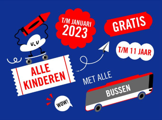 Geplaatst op:27-12-2022 Bijgewerkt op:27-12-2022 09:03 Kinderen reizen gratis met de busBron: Communicatie Syntus UtrechtVan 24 december t/m 31 januari 2023 reizen kinderen t/m 11 jaar gratis met de bus en tram in de provincie Utrecht. Deze actie geldt in alle bussen van Syntus Utrecht en alle bussen en trams van U-OV. “Het is kerstvakantie, hét moment om elkaar met de feestdagen te bezoeken, zeker nu het weer kan”, aldus Sharon Bolhuis, marketeer bij Syntus Utrecht. “Daarnaast is het al een dure tijd. Met deze actie willen we zorgen dat het makkelijker is om een keer de bus te pakken en samen met het gezin of de kleinkinderen op pad te gaan”. Reizen met het OV is voor kinderen t/m 3 jaar altijd gratis. Een buskaartje voor kinderen van 4 t/m 11 jaar kost normaal gesproken bij vervoerders Syntus Utrecht en U-OV € 1,10 en kan bij de buschauffeur gepind worden. Actievoorwaarden Kinderen t/m 11 jaar hebben tijdens de actieperiode geen vervoerbewijs nodig. Er mogen maximaal 3 kinderen per volwassene (18 jaar of ouder) gratis meereizen. Deze actie mag ook gecombineerd worden met de andere actie die bij Syntus Utrecht loopt (het Winter Wonder Ticket dat te koop is vanaf € 1,-). Ga voor meer informatie over deze actie naar www.syntusutrecht.nl/kidsgratis