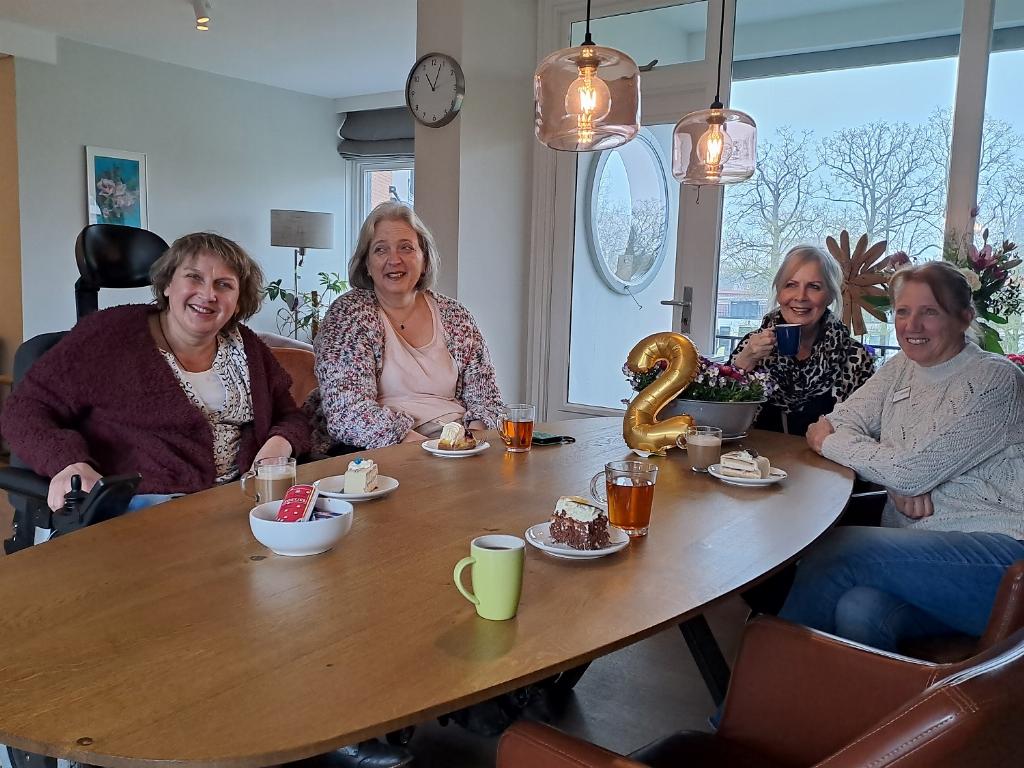 Geplaatst op:30-03-2023 Bijgewerkt op:30-03-2023 11:06 Logeerzorg niet meer weg te denkenBron: Mirjam BijlengaLogeerhuis Bredius viert tweede verjaardag! Het is nog maar twee jaar geleden dat aan de rand van het Landgoed Bredius het Logeerhuis haar deuren opende. Logeerzorg voor mensen met een chronische ziekte of mensen die vanwege ouderdom intensieve mantelzorg ontvangen was toen nog vrij onbekend. In eerste instantie ontstond ook wat verwarring, omdat mensen dachten dat de mantelzorger er kon uitrusten, terwijl het er juist gaat om degene die zorg nodig heeft. Die kan in het Logeerhuis een periode logeren alsof het een vakantie betreft. De mantelzorger kan hierdoor nieuwe energie opdoen door gewoon ev Inmiddels is het Logeerhuis niet meer weg te denken. Al meer dan 75 mensen hebben de afgelopen jaren de weg naar het Logeerhuis gevonden. Reden voor een bescheiden feestje. Logés en vrijwilligers genoten afgelopen zondag van een taartje bij de koffie.