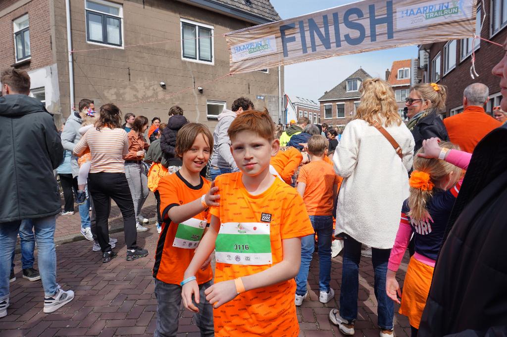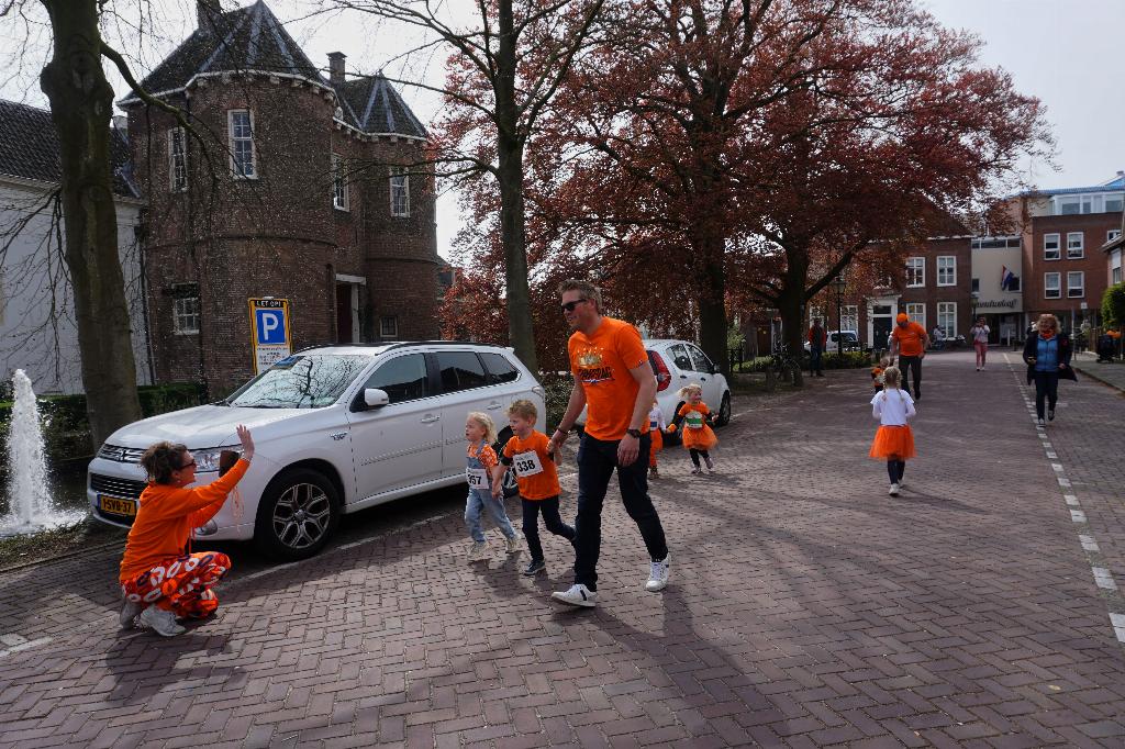 Kinderloop Het is druk bij start en finish op de hoek van Om't Hof/De Plaats. Veel deelnemende kinderen, waarvan sommigen nog erg jong. Zij lopen mee onder begeleiding van mamma of pappa, die blij zijn dat ze hun zoon of dochter kunnen bijbenen! Bij de start is het al lekker druk en de kinderen staan te popelen om het rondje zo snel mogelijk te voltooien.