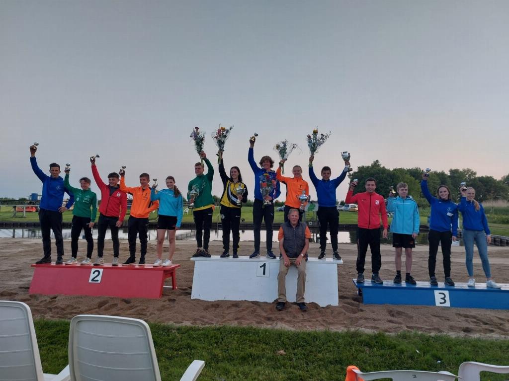 Geplaatst op:29-05-2023 Bijgewerkt op:29-05-2023 17:11 Polsstokverspringen in ZegveldBron: Arie van der Knaap, Polsstokbond Holland Zaterdag 27 mei 2023 stond in Zegveld het Zegvelds Kampioenschap polsstokverspringen op het programma. Met heerlijke lenteweer die dag waren de springers flink gemotiveerd om de schansen in Zegveld te testen. Op 1 juli 2023 wordt namelijk ook het tweekamp gesprongen in Zegveld. Voor de topklasse springers zijn er voor die tijd niet veel mogelijkheden om een wedstrijd in Zegveld te springen. Voor een ieder met de ambitie het tweekamp te springen moest er vanavond vertrouwen worden getankt in Zegveld. Senioren Zoals in elke klasse is het zo aan het begin van dit seizoen nog wennen. Sommigen hebben een lange wintertraining achter de rug, anderen hebben juist even een stapje terug gedaan in de winter om vol frisse energie het nieuwe seizoen te starten. Wie duidelijk goed aan zijn seizoen was begonnen is Sander van Vliet (Oudewater). Ook vanavond sprong hij weer naar een podiumplek. Met 19,04m werd hij 2e . Het hoogste podiumplekje werd bemachtigd door een nieuweling in de senioren categorie. Na jaren de juniorencategorie te hebben gedomineerd heeft hij nu ook zijn eerste dagtitel bij de senioren binnen. Met 20,21m werd Reinier Overbeek (Benschop) eerste. Erwin Timmerarends (Bodegraven) completeerde het podium met een verdienstelijke 18,89m. Dames Bij de dames was het tot de laatste sprong spannend. Tessa Kramer (Amersfoort) leek de verste afstand van de avond al in haar eerste sprong te hebben neergezet. Lang ging zij aan de leiding met een afstand van 15,47m. Zij is dit jaar van de Friese Bond overgestapt naar de Hollandse Bond vanwege de gunstigere reistijd. Op dit moment aast zij nog steeds op haar eerste dagtitel, want uiteindelijk bleef ze op de 2e plaats steken. In de allerlaatste finalesprong wist Demi Groothedde (Jaarsveld) voor de derde keer dit jaar al er met de winst vandoor te gaan. Na enkele dreigende sprongen was het de laatste sprong dus echt raak. Een sprong waarin zij meermaals de stok al klimmend corrigeerde en uiteindelijke tot 15,63m kwam. De derde plaats was met 14,66m voor Joriene Baas (Oudewater) die haar dreigende sprongen net niet om wist te zetten in de topafstanden waar ze op hoopte. Junioren Dat sommige springers wat meer druk nodig hebben om goed te presteren lijkt Mark van der Horst (Schoonhoven) wederom bewezen te hebben. Voor zijn laatste voorrondesprong waarschuwde hij al: let op, dit wordt hem. En hij kreeg gelijk. Met een afstand van 19,79 verpulverde hij de concurrentie en dit was ruim genoeg voor de winst van de wisselbokaal. De 2e plek werd bemachtigd door Jonathan Timmerarends (Montfoort). Als eerstejaars junior maakt hij een goede indruk. Ook de strijd met zijn broer Harmen zal bevorderlijk zijn voor zijn prestaties, houdt hem dus in de gaten! Hidde van Dam (Montfoort) wist de 3e plek veilig te stellen met een afstand van 17,35m. Meisjes De meisjes topklasse is tot op heden een spannende strijd, vanaf plek 2 dan. Want ook de vierde wedstrijd van het seizoen is gewonnen door Gemma van Oosterom (Woerdense Verlaat). Tijdens deze thuiswedstrijd liet zij wederom zien boven de concurrentie uit te steken. Een afstand van 13,18m was deze avond voor haar het maximaal haalbare. Nikita van Dijk (Kamerik) liet een mooie opbouwende wedstrijd zien en werd uiteindelijke 2e met een afstand van 12,22m. Isabel Overbeek (Benschop), werd onder de coachende begeleiding van haar vader, een voormalig polsstokspringer, mooi derde met een afstand van 11,86m. Jongens Tot slot dan de jongens topklasse. Hier sprongen veel plaatselijke toppers mee die het publiek op de banken probeerden te krijgen. De afgelopen weken werd er hard getraind, echter zal er bij de wedstrijden nog het een en andere gefinetuned moeten worden. Sander Kastelein (Zegveld) wist wel een beste seizoenprestatie neer te zetten. Hij werd 2e met en afstand van 14,56m. Kampioen van de avond bij de jongens werd Harmen Bogaard. Ondanks dat de voorbereiding niet geheel optimaal was heeft hij 2x de 17-meter grens gepasseerd deze avond. 17,24 was ruim voldoende om zich een jaar lang Zegveld Kampioen te noemen. Robbert Miltenburg (Maarssen) werd knap 3e met een afstand 13,38. Komebde wedstrijden De springers hebben nu een paar dagen rust om te herstellen en zich voor te bereiden op de wedstrijden die komen. Komende woensdag 31 mei wordt er om 19.00u in Vlist gesprongen en zaterdag 3 juni 18.30 is Kockengen gastheer voor de wedstrijd.Verge et u niet 1 juli in de agenda te zetten? Dan bent u wederom van harte welkom in Zegveld om de Hollandse Springers te supporten in hun strijd tegen de Friezen.