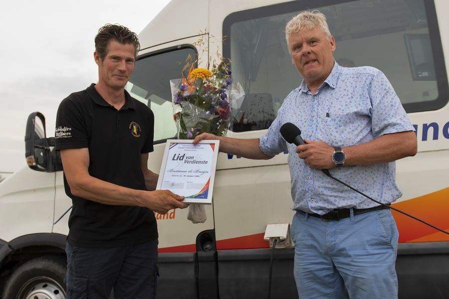 Junioren De junior Harmen Timmerarends (Montfoort) was dit seizoen vooralsnog op zoek naar de vorm, maar lijkt deze nu gevonden te hebben. Hij verbeterde zijn persoonlijk record met een formidabele 19.70 meter sprong en schreef hiermee de wedstrijd op zijn naam. Een spannende strijd werd gestreden om het zilver waarbij Wessel Schenk (Schoonhoven) in zijn finale poging tot 16.36 m kwam. Jorn Kamphof (Linschoten) kwam tot 16.29 m en moest genoegen nemen met het brons. Meisjes In de meisjesgroep was het Gemma van Oosterom (Woerdense Verlaat) die boven zichzelf uitsteeg. Ze verbeterde haar persoonlijk record twee maal en wist deze in haar laatste finale sprong tot 15.39 m te brengen. Tessa van Vliet (Nieuwkoop) wist met 1 centimeter verschil haar concurrent Wesselink (Montfoort) voor te blijven met 12.56 m en zo de 2e plek op te eisen. Jongens Bij de jongens maakte Harmen Boogaard (Polsbroek) een formidabele sprong van 19.26 meter. Hij liet hiermee de concurrentie ver achter zich. Stan van der Bas (Schoonhoven) begon sterk aan de wedstrijd door in zijn eerst poging zijn persoonlijk record aan te scherpen naar 15.58 meter. Hij pakte hiermee het zilver. Arien Kastelein (Zegveld) was met 14.84 m goed voor het brons. Bastiaan de Bruin Een speciale dag was het voor Bastiaan de Bruijn (Lopik, foto). In de middagwedstrijd wist hij de Eikelenboom bokaal op zijn naam te schrijven. Voor aanvang van de finale van de RB traprenovatie Bokaal werd hij in het zonnetje gezet door de voorzitter van de Polsstokbond Holland. Bastiaan heeft meer dan 20 jaar de commentatorbus en de bijhorende polsstokwagen gereden naar de wedstrijden binnen de regio en Friesland. Hij is benoemd tot lid van verdienste van de Polsstokbond Holland.