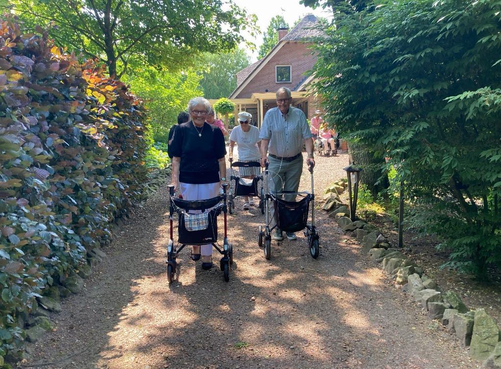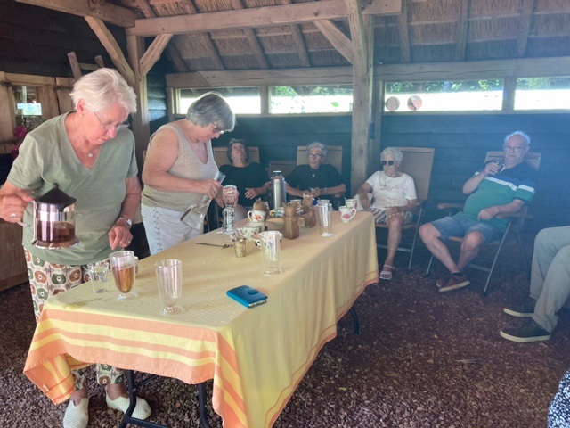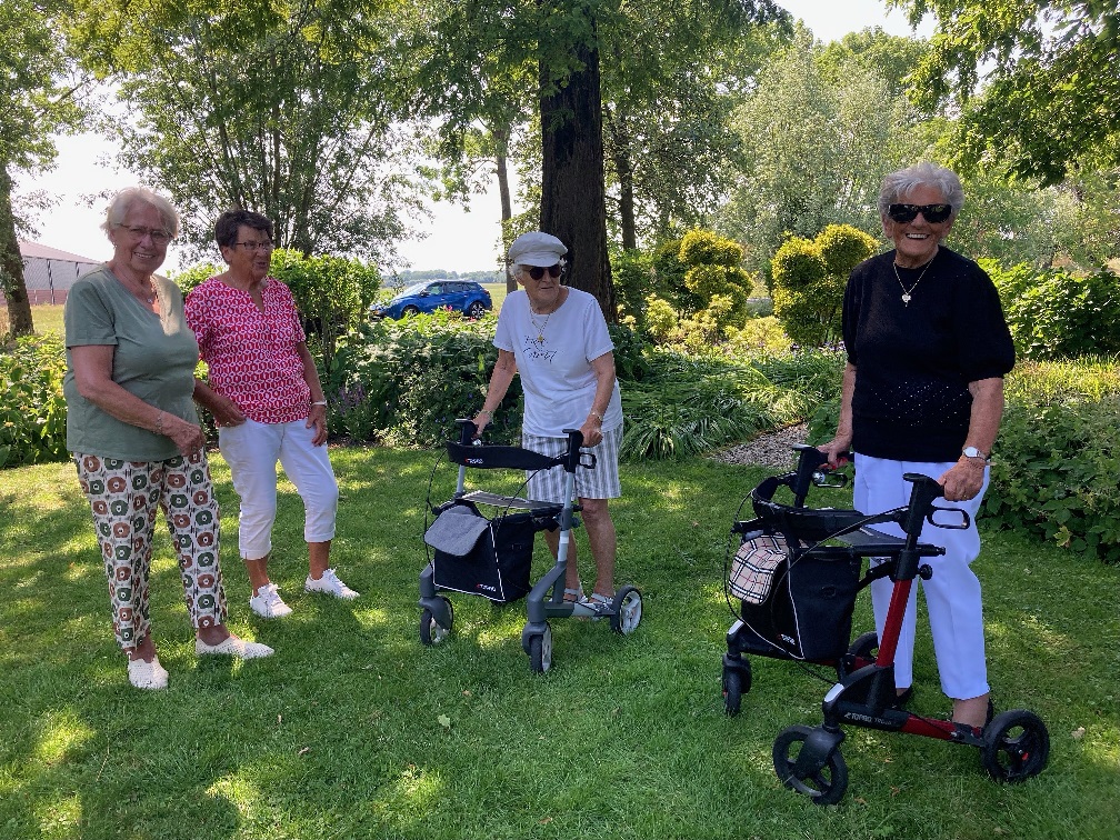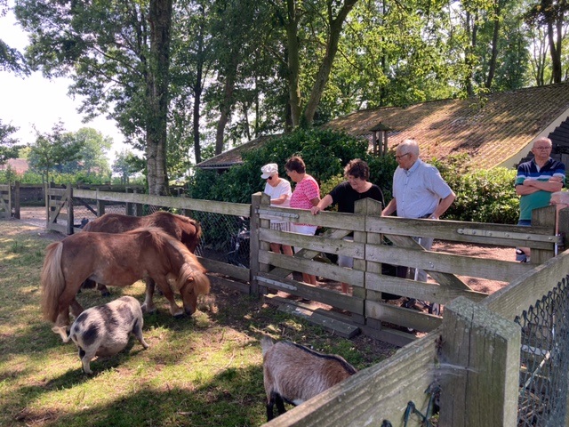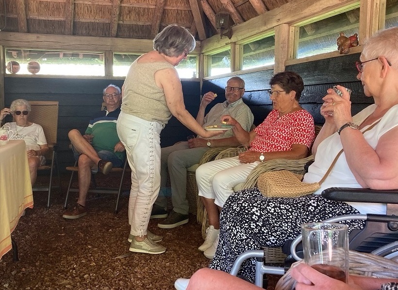 Geplaatst op:20-06-2023 Bijgewerkt op:20-06-2023 14:55 Zonnebloemgasten bezoeken tuin in LinschotenBron: Mia DanielsMaar liefst drie middagen waren de gasten en vrijwilligers van de Zonnebloem welkom in de tuin van mevrouw en meneer Van de Berg aan de Cattenbroekerdijk in Linschoten. We werden ontvangen met koffie en thee en de Zonnebloem had voor iets lekkers gezorgd. Het was er heerlijk in de schaduw onder de grote overkapping, waar we gezellig zaten samen met onze gastvrouw en gastheer en steeds 10 gasten en 4 vrijwilligers. Daarna hebben we een wandeling door de mooie tuin gemaakt. Achter in de tuin is alle ruimte voor twee zwijntjes, twee pony’s en een aantal geitjes. Ook is er een grote haag, met daarachter een grassentuin en hortensia’s. Er staan prachtige rododendrons en we hebben genoten van de kleurrijke bloemen. Hartelijk dank mevrouw en meneer Van de Berg voor jullie gastvrijheid!