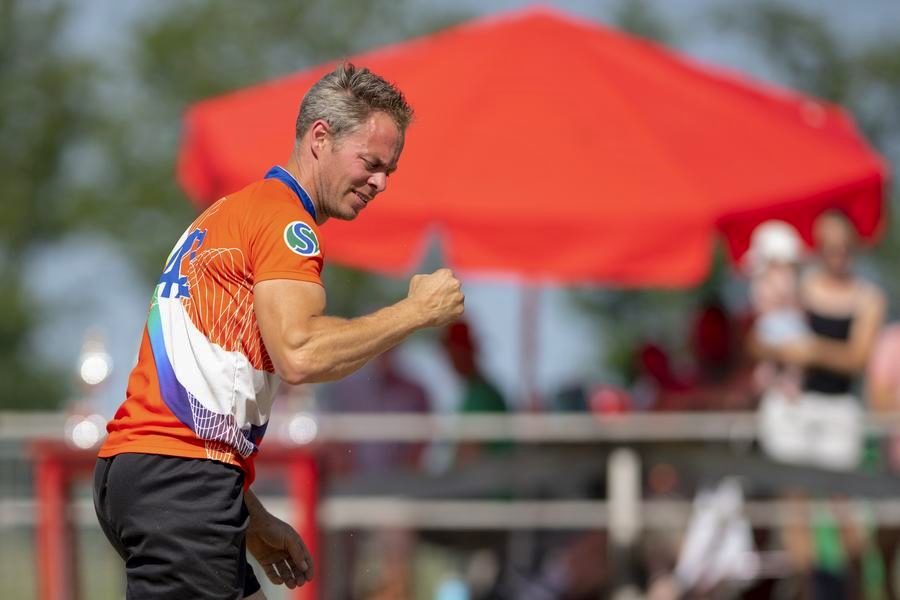 Bij de senioren topklasse ging de winst naar Jaco de Groot (Kamerik, foto), die in de voorronde een afstand sprong van 20,84m. Hiermee zit hij debutant Reinier Overbeek (Benschop) op de hielen in de competitie, die bezig is aan een hele constante serie wedstrijden. Hij zette een afstand neer van 20,21m. Daniel Cluistra (Haastrecht) sprong 19,56m., maar moest vanwege zijn werk de finale overslaan.