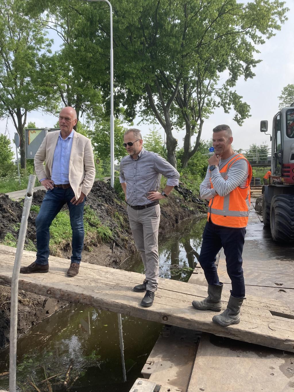 Geplaatst op:26-06-2023 Bijgewerkt op:26-06-2023 09:34 Herstel oevers Lange en Korte Linschoten en HaardijkBron: Gemeente MontfoortDe oevers langs de Lange en Korte Linschoten en Haardijk in Linschoten zijn verzakt en een deel van de bermen is verdwenen. We zijn gestart met het plaatsen van nieuwe beschoeiing en voeren herstelwerkzaamheden uit aan de taluds en bermen. Dit doen we in twee verschillende fasen. In 2020 heeft de gemeenteraad ingestemd met het plan voor het herstel van de taluds en bermen langs de Lange Linschoten, Korte Linschoten en Haardijk. Het project is verdeeld in twee fasen. Fase 1 volop bezig Half januari van dit jaar startte aannemingsbedrijf Van Leeuwen GWW B.V. uit Harmelen met de uitvoering van de eerste fase. In deze fase voert ze werkzaamheden uit langs de Lange Linschoten en de Haardijk (Haardijk en de Noord Linschoterdijk tussen Oudewater en TOP-Linschoten). Het streven is om eind oktober 2023 klaar te zijn met deze werkzaamheden. Noord Linschoterdijk en Haardijk De werkzaamheden langs de Noord Linschoterdijk zijn gereed. Op dit moment werkt de aannemer aan de beschoeiing en herstelwerkzaamheden langs de Haardijk. Om die reden is de Haardijk ter hoogte van de Schapenlaan tot de Noord Linschoterdijk afgesloten. Voor dit deel is het niet mogelijk om dit werk vanaf het water uit te voeren. Dit wordt dus vanaf de weg gedaan. De Haardijk is tijdens de werkzaamheden afgesloten voor alle verkeer. Voor zowel autoverkeer als fietsers en voetgangers is met borden een omleiding aangegeven. Hulpdiensten krijgen altijd doorgang. Wethouder Van Dalen kwam eind mei op werkbezoek om het resultaat te bekijken en de lopende werkzaamheden te zien. Kees van Dalen: “Ik ben erg blij met het eindresultaat van de al herstelde oevers en bermen langs de Noord Linschoterdijk. De nieuwe beschoeiing gaat zeker 60 jaar mee. Hiermee is de veiligheid van de weg voor de langere termijn gegarandeerd. Voor de lopende werkzaamheden is het goed te horen dat de aannemer in contact is met de aanwonenden van de Haardijk over de werkzaamheden en de bereikbaarheid van hun woning of bedrijf.”  Wilt u meer weten over dit project, de fases en planning? Dit leest u via de projectenpagina op de website.
