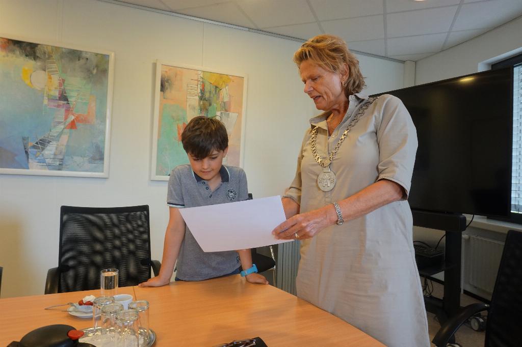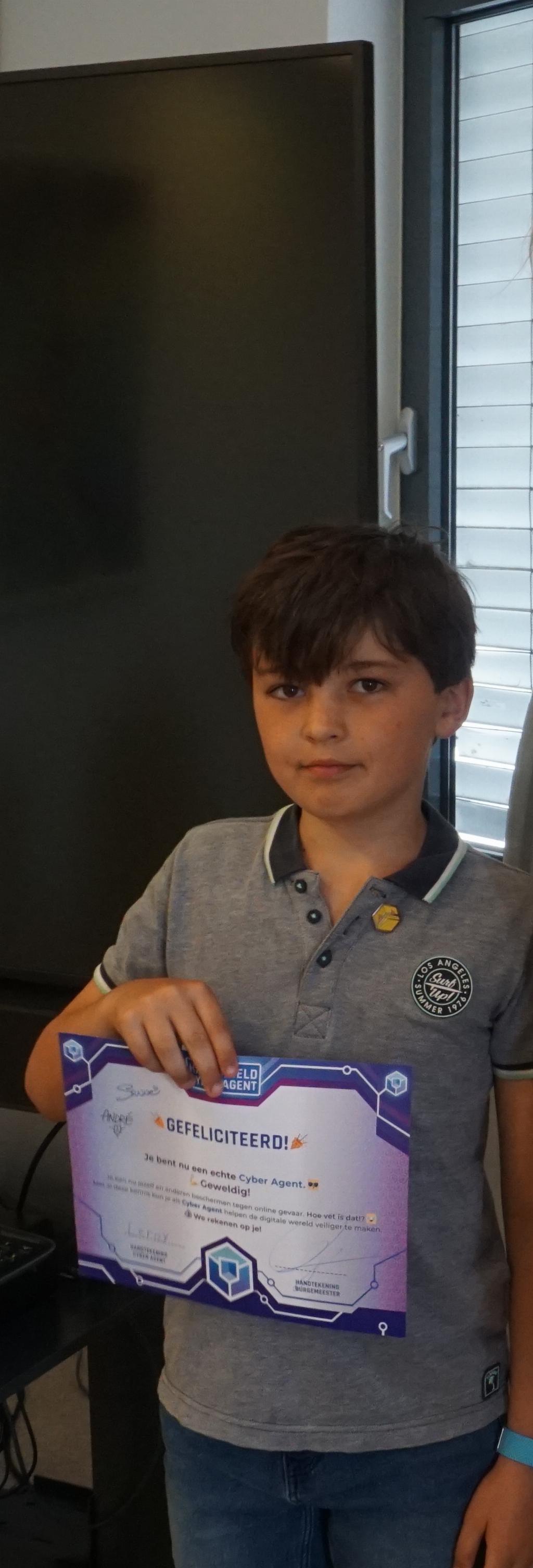 Geplaatst op:28-06-2023 Bijgewerkt op:29-06-2023 10:33 Junior Cyber Agent Leroy Groen gehuldigd op 27 juni 2023Bron: Ad Huizer, redactie Radio Stad Montfoort Vandaag, woensdag 27 juni 2023, is een grote dag voor de 9-jarige Leroy Groen uit Montfoort. Hij is samen met zijn ouders en grootouders aanwezig in het Huis van Montfoort, waar burgemeester Petra van Hartskamp hem huldigt voor zijn topprestatie in het spel HackShield: beste Junior Cyber Agent van Montfoort! Wat is HackShield? Remco van HackShield vertelt over het spel. HackShield is een spannend spel over de gevaren op internet. Het leert kinderen (online) skills waarmee ze zich kunnen wapenen tegen cybercriminaliteit. Daardoor kunnen ouders en grootouders door hun (klein)kinderen op de internetvalkuilen worden gewezen! Leroy is winnaar geworden van dit spel. Reden voor de burgemeester om hem in het zonnetje te zetten. Wie is Leroy Groen? Leroy is een 9-jarige jongen uit Montfoort, Hij zit in Oudewater op school. Leroy heeft als hobby's judo en badminton en wil later politieman of pizzabakker worden. Leroy heeft met plezier aan het spel HackShield meegedaan. Hij vond het vooral leuk dat er allemaal moeilijke vragen waren. Leroy vindt het belangrijk dat iedereen Cyber Agent wordt! Gevaren internet De burgemeester vraagt aan Leroy of hacken (door anderen binnendringen in een computer(systeem) om zwakke plekken te onderzoeken) bij iedereen bekend is. De oudere generatie kent het vaak niet. De Junior Cyber Agent zorgt ervoor dat we zo veilig mogelijk kunnen internetten. Leroy vindt de gestuurde linkjes de grootste gevaren op internet. Deze zijn makkelijk te openen en voor je het weet is je bankrekening geplunderd. Zelf mag Leroy (nog) niet op Tik Tok en You Tube, omdat daar lastig te onderscheiden is wat echt is en wat niet. Tip van Leroy Onze Junior Cyber Agent heeft 2 nuttige tips om veilig te kunnen internetten: zorg altijd voor een sterk wachtwoord met tenminste 16 tekens, liefst met diverse tekens door elkaar. Gebruik nooit hetzelfde wachtwoord voor meerdere programma's! Huldiging: uitreiking speldje en certificaat Onder het genot van een drankje en een gebakje wordt gezellig gepraat over de Cyber Agents en hun rol. De gemeente benadrukt dat het heel belangrijk is dat jonge mensen als Leroy zich inzetten als Junior Cyber Agent! Hierna volgen wat foto's van de huldiging en uitreiking van speldje en oorkonde.