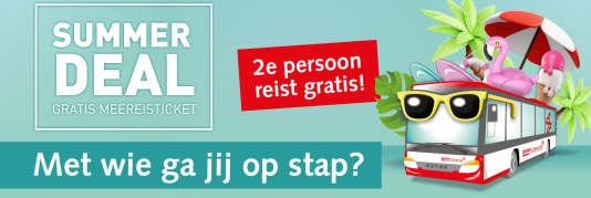 Geplaatst op:08-07-2023 Bijgewerkt op:08-07-2023 13:40 Reizigers in de provincie Utrecht reizen tot en met 20 augustus extra voordelig met de bussen van Syntus UtrechtBron: Communicatie Syntus UtrechtVoordelig met Syntus Utrecht in de zomervakantie: gratis meereisticket, kinderen t/m 11 jaar gratis en dagkaart voor 6 euro Reizigers in de provincie Utrecht reizen tot en met 20 augustus extra voordelig met de bussen van Syntus Utrecht. De vervoerder heeft maar liefst 3 kortingsacties deze zomer! Alle kortingsacties zijn terug te vinden op www.syntusutrecht.nl/acties. Kinderen t/m 11 jaar reizen gratis Tijdens de schoolvakanties van 2023 mogen (groot)ouders hun (klein)kinderen t/m 11 jaar gratis meenemen. Dit geldt voor alle bussen van Syntus Utrecht en alle bussen en trams van U-OV. De Utrechtse vervoerders hopen dat gezinnen er hierdoor makkelijk en voordelig op uit gaan. Per volwassene mogen er 3 kinderen gratis meereizen. Kinderen die gratis meereizen hebben geen vervoerbewijs nodig. Meer informatie over de actie vind je op: syntusutrecht.nl/nl-nl/kidsgratis Gratis meereisticket Met het gratis meereisticket reis je met z'n tweeën voor de prijs van één. Deze actie geldt tijdens de zomervakantie. Degene die betaalt checkt heel eenvoudig in- en uit met zijn of haar betaalpas (dat wordt ook wel OVpay genoemd). Reizen met de OV-chipkaart of het pinnen van een kaartje bij de buschauffeur is ook nog steeds mogelijk. Het gratis meereisticket is aan te vragen via: syntusutrecht.nl/summerdeal.