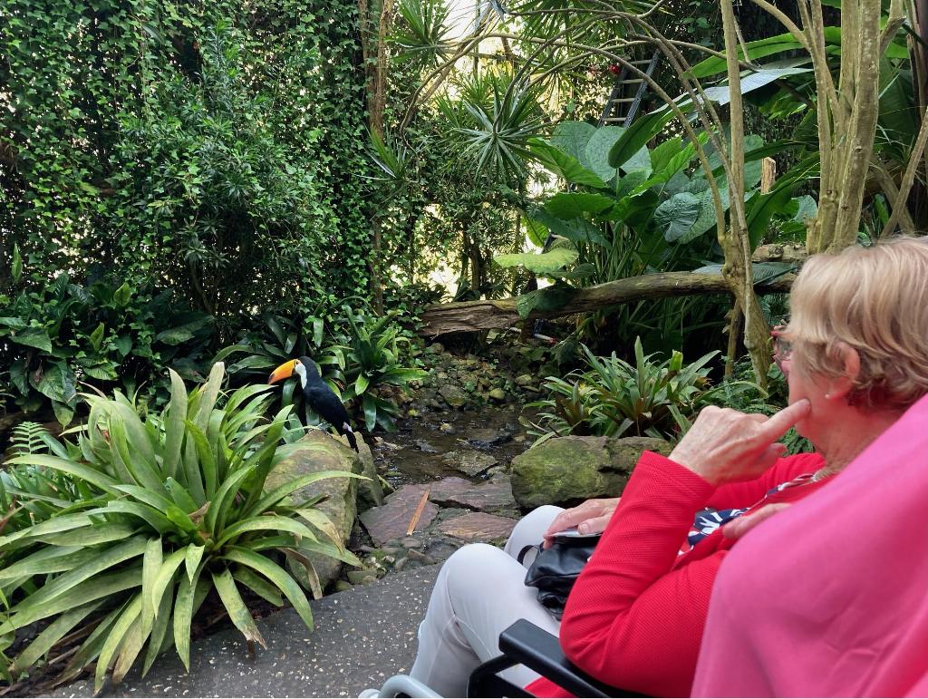 Geplaatst op:17-08-2023 Bijgewerkt op:18-08-2023 08:34 De bustocht naar de Orchideeenhoeve met de ZonnebloemBron: Mia DanielsVeertig gasten van de Zonnebloem Montfoort en Linschoten zijn een dag naar “Tropisch orchideeënpracht” geweest. Maar liefst 15 rolstoelen gingen mee de bus in en ook nog heel wat rollators. De bus maakte een toertocht door de polders naar Luttelgeest in de Noordoostpolder. Onderweg vertelde de chauffeur allerlei leuke bijzonderheden. Na aankomst was er een koffietafel met een heerlijke kroket. Daarna gingen we de Orchideeënhoeve in. Het was alsof we in een tropisch regenwoud waren. Er staan hoge bananenbomen en andere exotische planten en er zijn heel veel bloemen en orchideeën te zien. We liepen langs beekjes met vissen, langs toecans die vrij rondvlogen en door een grot naar de vlindervallei. Daar vlogen prachtig gekleurde vlinders vrij rond. Iedereen had het naar zijn zin. We sloten de middag af met een drankje en onze gasten gingen vol enthousiasme weer naar Montfoort. Daar zijn ze bijna allemaal met de lift uit de bus begeleid door enkele vrijwilligers en een geweldige chauffeur. Door de begeleiding van 18 vrijwilligers, maar ook de lotenverkoop is dit uitstapje mogelijk geweest. Dank aan iedereen die een of meer loten van de Zonnebloem heeft gekocht!