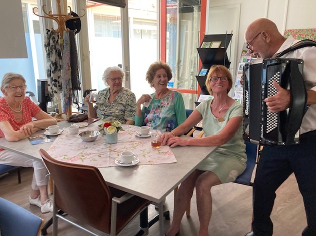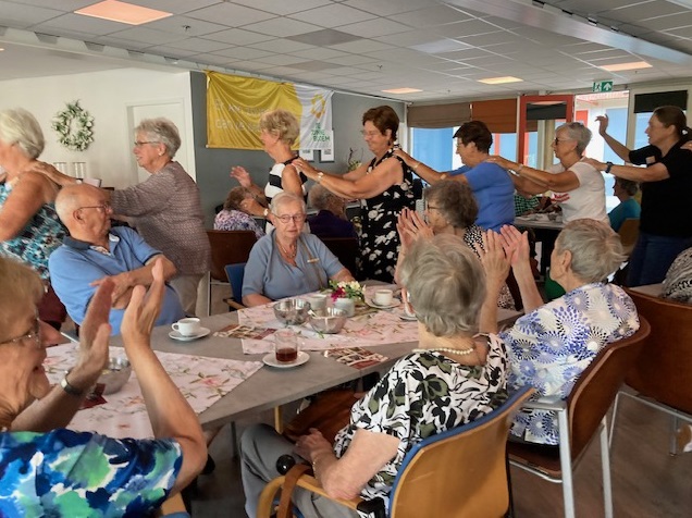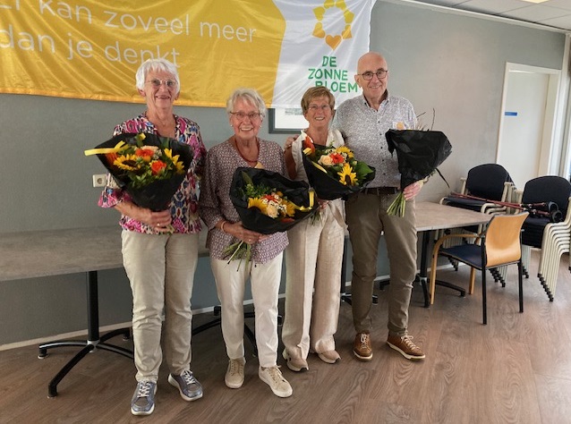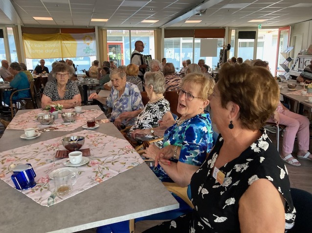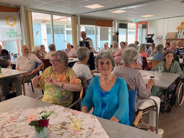 Geplaatst op:18-09-2023 Bijgewerkt op:18-09-2023 11:28 Ontmoetingsmiddag ZonnebloemBron: Mia DanielsIedereen was welkom op deze middag en de opkomst was groot met iets meer dan 50 gasten en 20 vrijwilligers. De muziek van senior entertainer Hans werd begeleid door een accordeon en gitaar. We zongen mee met liedjes van vroeger, er werd geklapt en gedanst. Tot twee keer toe was er een polonaise, waar zelfs een paar oudere gasten fanatiek aan mee deden. De sfeer zat er goed in. Ook werd aandacht besteed aan de Zonnebloem jubilarissen. Leni Scheel, Anny van Leeuwen, Ria Kolfschoten en Sjaak Berends zijn al 10 jaar actief voor de Zonnebloem. Leni was jarig en kon er deze middag niet bij zijn. De anderen kregen een zilveren speldje. De vijfde jubilaris, Ria Dorresteijn, zet zich maar liefst al 25 jaar in voor de Zonnebloem en kreeg daarvoor een gouden speldje. Ze werden allemaal hartelijk bedankt voor hun jarenlange inzet en kregen ook nog een oorkonde en natuurlijk mooie bloemen. Daarna zongen alle vrijwilligers uit volle borst het Zonnebloemlied. De middag werd afgesloten met nog een extra drankje en hapje. De gasten en ook de vrijwilligers keken terug op een gezellige en geslaagde middag.