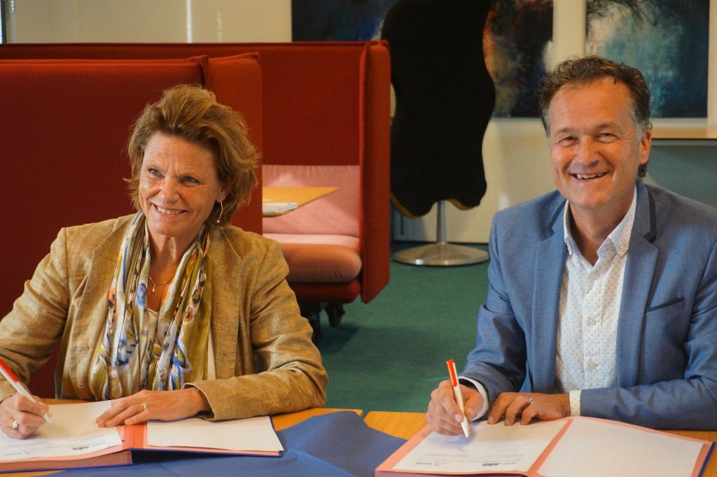 Op de foto hierna ondertekenen de burgemeester en de dijkgraaf het samenwerkingsdocument.