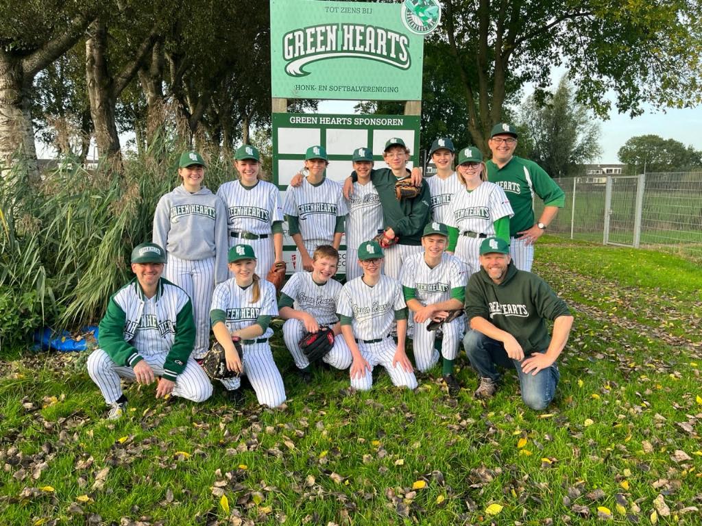 Afgelopen zaterdag 7 oktober zijn de aspiranten van honkbalvereniging Green Hearts uit Linschoten uitgeroepen tot kampioen in hun competitie. De jongens en meiden van het U15-team werden kampioen in de 3e klasse, poule D van honkbalbond KNBSB.