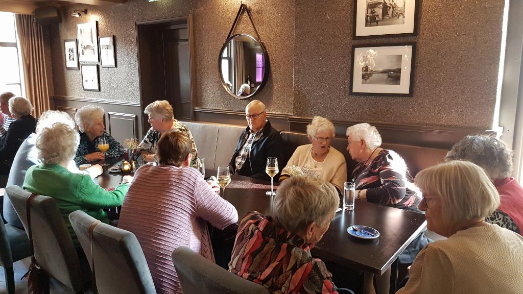 Geplaatst op:29-11-2023 Bijgewerkt op:29-11-2023 13:57 Uitstapje ZonnebloemBron: Mia DanielsWoensdag 15 en dinsdag 21 november zijn in restaurant De Heeren van Montfoort 52 gasten en 18 vrijwilligers van de Zonnebloem Montfoort verwend met heerlijk gebak bij de koffie en thee. Daarna was er een drankje naar keuze en werd getrakteerd op een bitterbal. Het was er goed toeven. Iedereen ging enthousiast naar huis. Met dank aan de heer Ekelschot voor de fijne ontvangst.