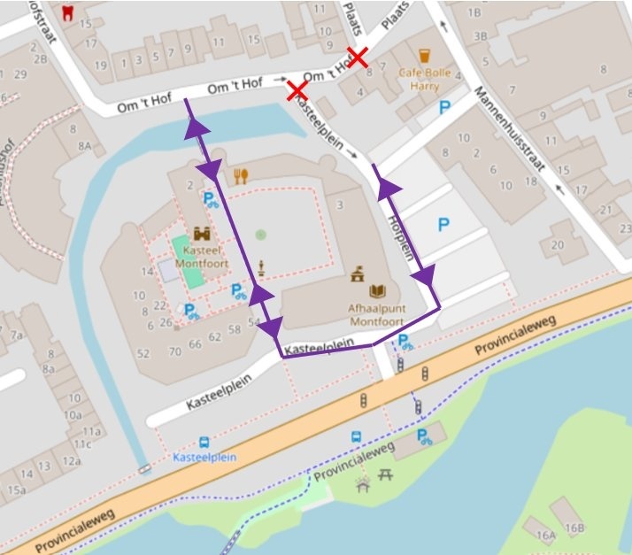 Geplaatst op:07-12-2023 Bijgewerkt op:07-12-2023 15:54 Afsluiting tussen Om 't Hof en HofpleinBron: Gemeente Montfoort De werkzaamheden in de binnenstad schuiven weer een stukje op. Vanaf maandag 11 december tot en met maandag 22 januari is het kleine straatje (Kasteelplein) tussen het Hofplein en Om 't Hof afgesloten voor al het verkeer (auto’s, fietsers en voetgangers). Tijdens de kerstvakantie (vanaf vrijdagmiddag 22 december tot en met zondag 7 januari) wordt er niet gewerkt en is de straat tijdelijk weer geopend. Omleidingsroute Autoverkeer rijdt momenteel al om via de Achterstraat en de Mannenhuisstraat. Fietsers en voetgangers kunnen via het Kasteelplein bij het Hofplein komen. We verzoeken fietsers om af te stappen als zij deze route gebruiken.
