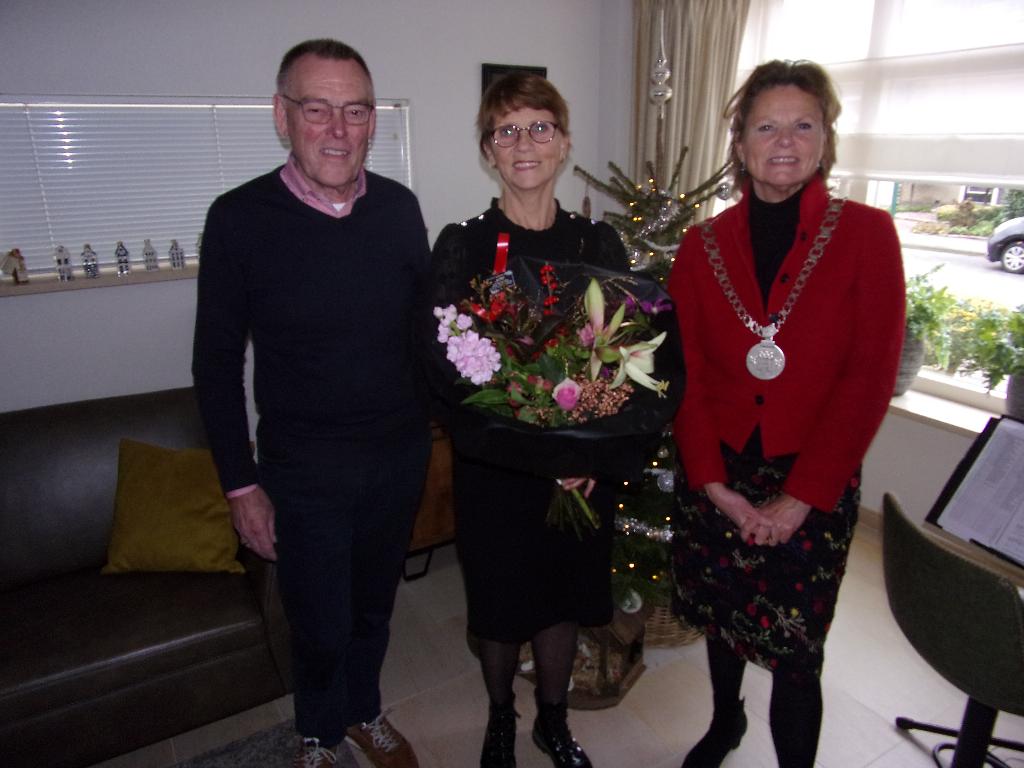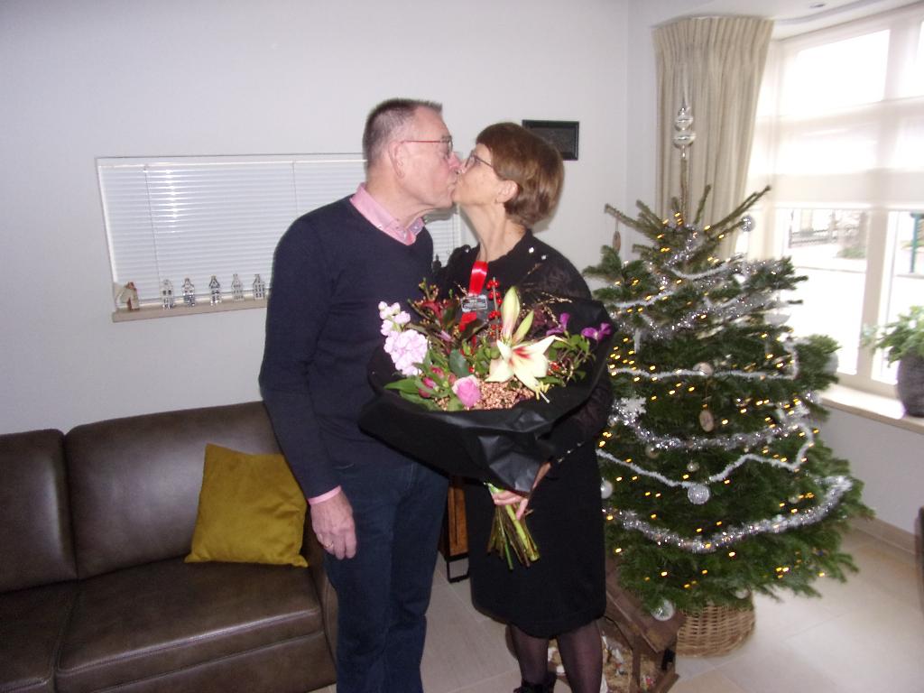 Maandag 18 december bracht burgemeester van Hartskamp een mooi boeket bij Bets en Ben Van Dijk – Spanenburg. Daags tevoren waren ze 50 jaar getrouwd en dat was een bloemetje waard.