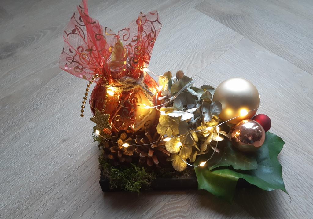 Dat was drie dagen lang hard werken en tevens gezellig bezig zijn voor de vele vrijwilligers. Het idee om een amaryllis als basis te nemen en dat te versieren met groen, kerstballen en kerstverlichting kwam van Anny van Leeuwen. Haar zus Ria Kolfschoten stelde haar huis ter beschikking om alle attenties te maken en ze zolang een plek te geven in de garage.