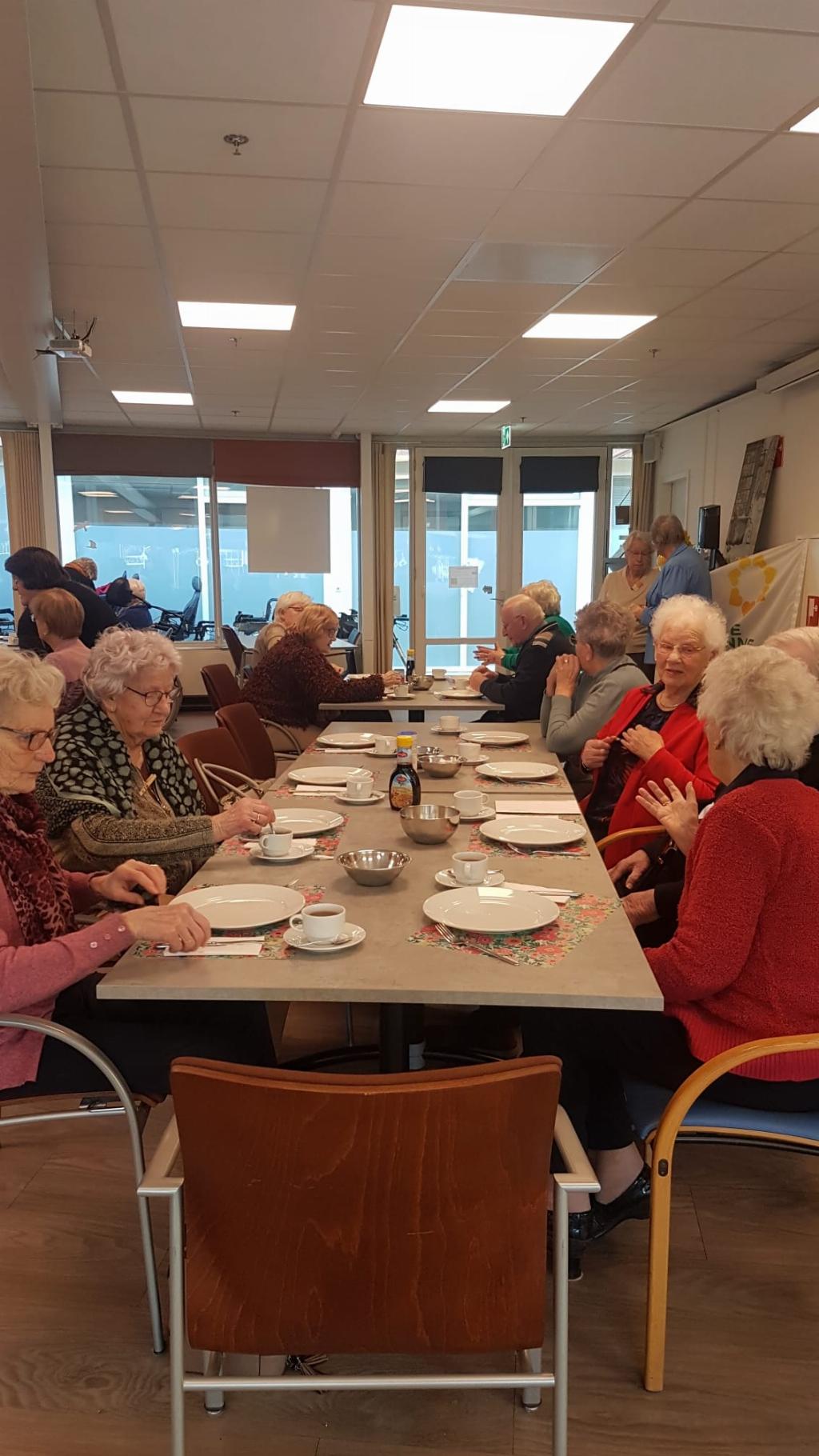 Vrijdag 19 januari hebben 8 personen samen 16 pakken pannenkoeken gebakken. Er waren ongeveer 52 deelnemers en 17 vrijwilligers. De gasten kregen koffie of thee en daarna waren er 3 rondes dat er pannenkoeken uitgedeeld werden. Keurig met een handschoen aan, uit hygiënisch oogpunt.