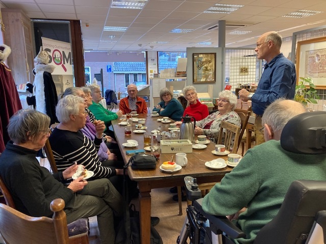 Geplaatst op:09-02-2024 Bijgewerkt op:09-02-2024 09:05 De Zonnebloem was te gast bij het Stadsmuseum de Knoperij in Montfoort.Bron: Mia Daniels, ZonnebloemMet z’n twaalven en Peter Versloot, de gids van het museum, zaten we rond de grote tafel. Natuurlijk was er eerst gezelligheid met thee, koffie en een taartje. Daarna vertelde Peter over het ontstaan van het museum en de schenkingen van de lokale Montfoortenaren. Vervolgens gingen we het museum in om te luisteren naar de geschiedenis van het stadje. Zo weten we nu dat de bewoners vroeger met een trekschuit naar Utrecht gingen om er hun waren te verkopen. Zo’n trekschuit ging ook naar Amsterdam en deed er 8 uur over. Er zijn mooie foto’s van uitspanningen en cafés van vroeger, waarvan er een aantal nog steeds bestaan. En over 5 jaar gaan we het 1000-jarig bestaan van de stad Montfoort vieren! De gasten en vrijwilligers vonden het een hele interessante middag en bedankten Peter voor zijn boeiende verhalen. Binnenkort gaat er weer een tiental gasten op bezoek naar De Knoperij. Het is zeer de moeite waard om er een kijkje te nemen.
