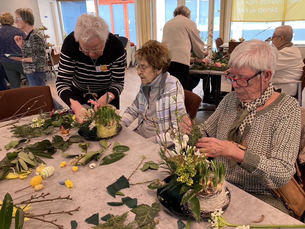 Bewoners uit Montfoort hebben na een oproep op facebook leuke paasversieringen afgegeven. De Bosrand uit Woerden heeft verse bloemen cadeau gedaan en de Zonnebloem heeft een schaal en de narcisjes gekocht.