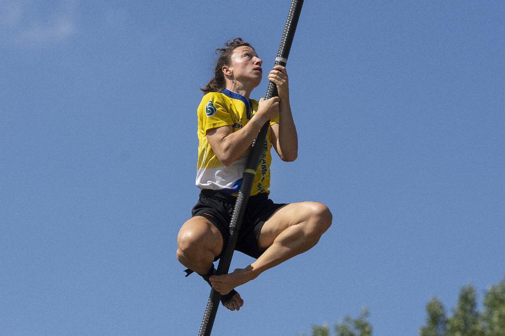 Geplaatst op:09-06-2024 Bijgewerkt op:09-06-2024 16:38 Verslag van der Vaartbokaal, zaterdag 8 juni 2024 in LinschotenBron: Polsstokbond HollandTessa Kramer wint in een winderig Linschoten Afgelopen zaterdag was de eerste klasse wedstrijd in Linschoten. De springers hadden een harde wind die vaak van richting wisselde. Het zorgde ervoor dat de Installatie van der Vaart Bokaal spannend tot het einde was bij verscheidene categorieën. Senioren Polsstokverspringer Rian Baas (Gouda) stond in de seniorencategorie ver boven de concurrentie. Na een natsprong behaalde hij een magnifieke afstand (21.10m), waarmee hij comfortabel de trofee binnen sleepte. Ook veroverde hij het leidersshirt van het ABZ Diervoeding klassement. De strijd voor de overige finaleplekken lag open tot het einde. Ronald van Bemmel (Utrecht) startte zijn wedstrijd met een persoonlijk record van 18.77m. Hiermee ging hij als vierde de finale in, samen met Daniel Cluistra (Haastrecht), die een 18.99m op het scorebord wist te krijgen. Lucas van Eijk (Haastrecht) sprong eerder een 18.97m. Eenmaal in de finale sprong Ronald een mooi pr van 19.17m, waarna er geen wijzigingen meer waren in de beste afstanden. Dames Bij de dames wist klassementsleidster Tessa Kramer (Amersfoort) ruimschoots te winnen met een mooie serie van 16 meter sprongen. Ze eindigde met een respectabele 16.79m. Demi Groothedde (Jaarsveld) en Laura Maaijen (Haastrecht) hadden verder een leuke strijd voor de tweede plek, waar Laura (15.25m) die wist te claimen. Demi deed haar best om datte verslaan, maar helaas bleef zij hangen op een afstand van 15.04m.