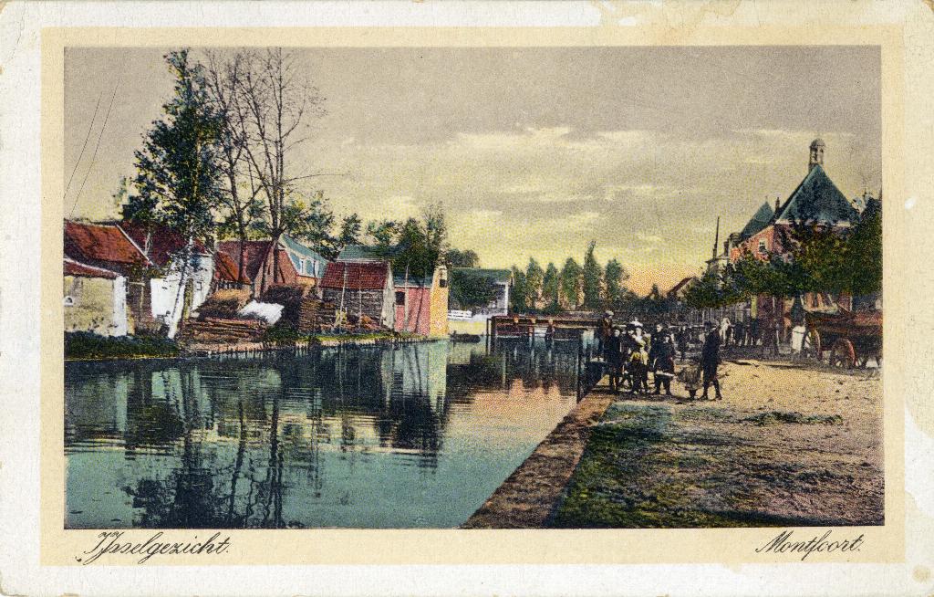 Gezicht op Onder de Boompjes, de Hollandsche IJssel en de IJsselkade met bebouwing te Montfoort uit het noordoosten. 1920- Utrechts Archief.jpg