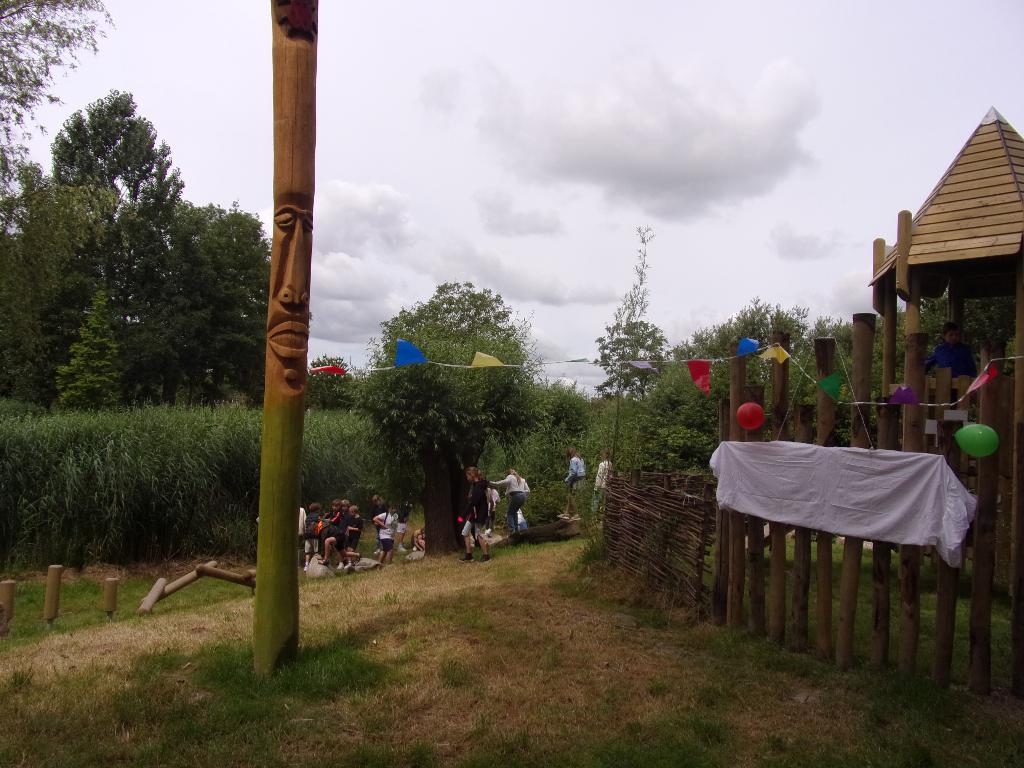 De speeltuin is gemaakt van natuurlijke en deels groeiende materialen en past fraai in het groene park. Het daagt de jeugd uit om lekker fantasierijk buiten te spelen.