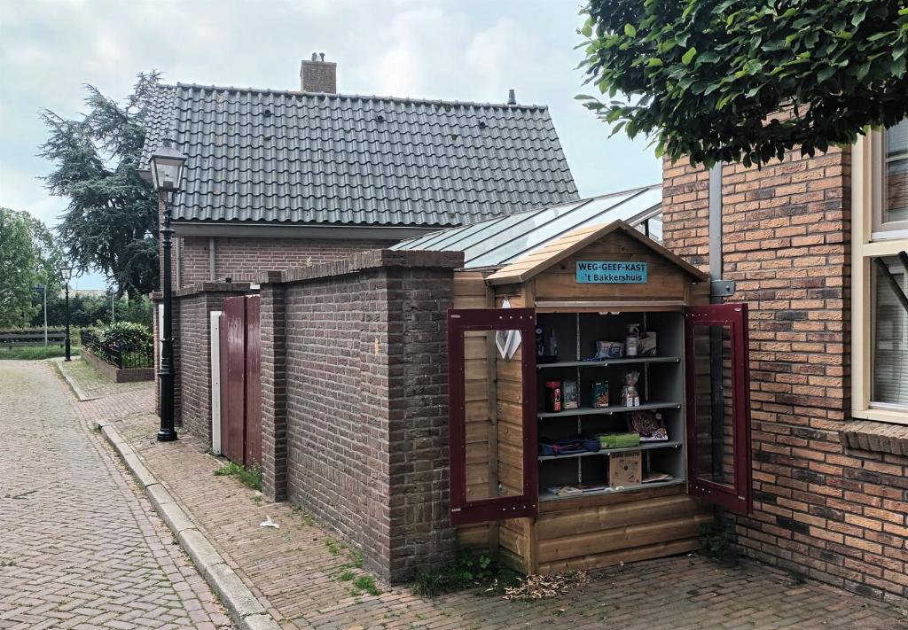 Wederkerigheid staat hoog in het vaandel De weggeefkast is ontworpen en gemaakt door enkele deelnemers van het ontmoetingscentrum. 't Bakkershuis is een laagdrempelig ontmoetingscentrum voor iedereen die te maken heeft met geheugenklachten en/of beginnende dementie. Zij bieden een ontmoetingsplek in de buurt waar mensen gewaardeerd worden om wie ze zijn en waar iedereen meetelt. Wederkerigheid staat bij hen hoog in het vaandel. Men komt iets halen, maar ook wat brengen! Door het ontwerpen, maken en beheren van de weggeefkast dragen de deelnemers hun steentje bij aan maatschappij.