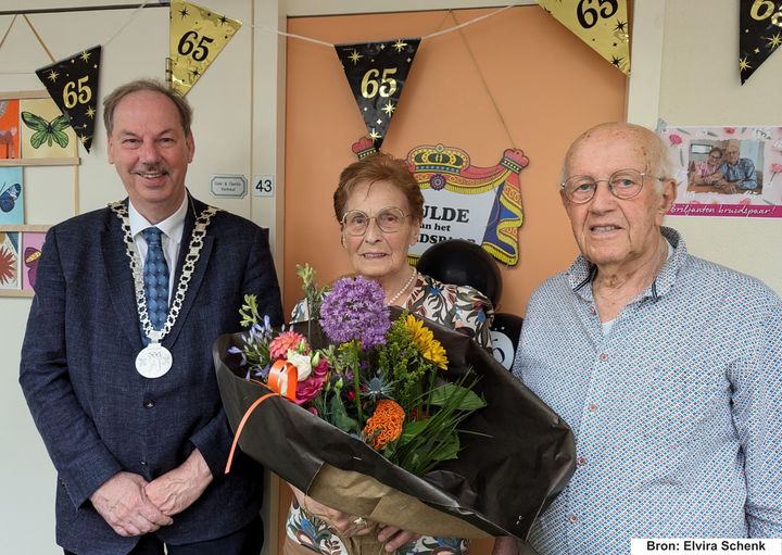 Op de vraag wat het echtpaar samen graag doet antwoordt Dirk lachend: "bekvechten!". Zij koken graag samen en samen eten is ook heel plezierig. Geheimen? Wat zijn de geheimen om zo lang samen te blijven? Het echtpaar somt wat belangrijke dingen op: - Blijven lachen en ademhalen - Samen leuke dingen doen, maar elkaar ook vrijlaten - Wat ook belangrijk is: op tijd rust nemen en de humor erin houden Viering Het 65-jarig huwelijk wordt zondag gevierd met de familie in de Heeren van Montfoort. Dat zal in klein gezelschap zijn. Dirk en Gerda kijken daar enorm naar uit. Aan het eind van het aangename en gezellige bezoek mag het echtpaar op de foto met de loco-burgemeester.