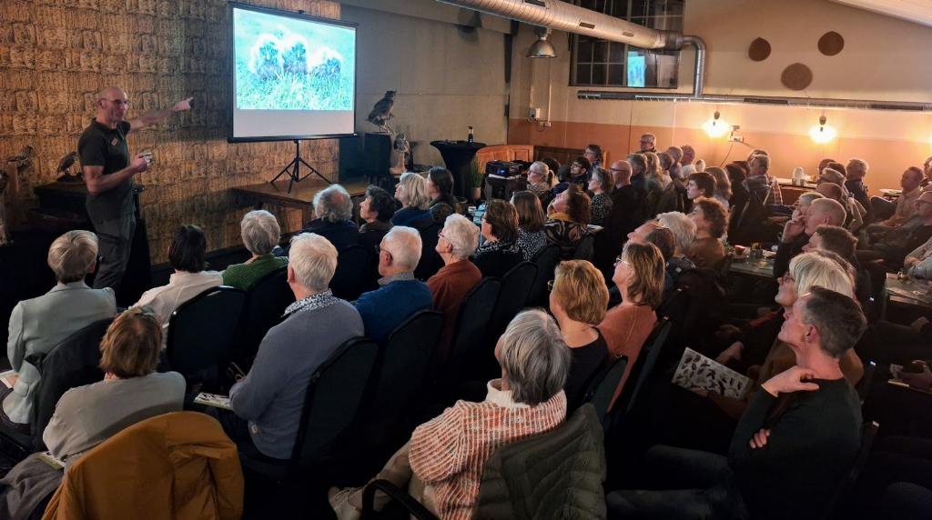 Een drukbezochte lezing over uilen in de Lopikerwaard door natuurgids Gijs van Kempen, bij Boer Hans Activiteiten. Het aantal bezoekers (90) verraste iedereen!
